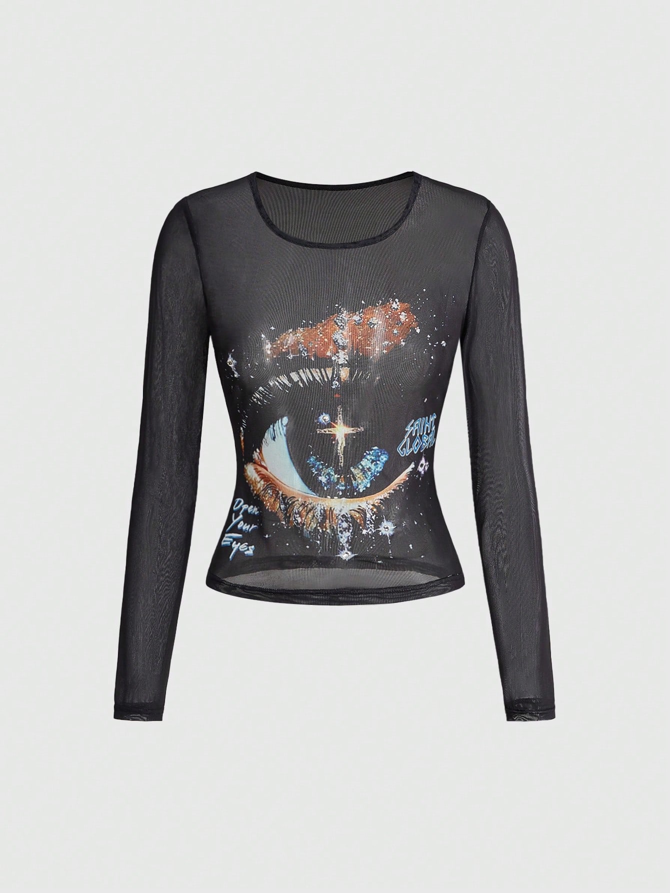 ROMWE Avant Blusa trasparente con stampa cielo stellato, stile retrò e unisex, adatta allo streetwear
