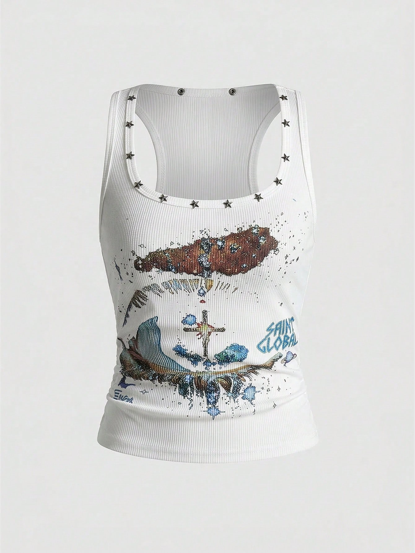 ROMWE Avant Canotta unisex da donna in stile retrò baddie, con stampa cielo stellato e borchie