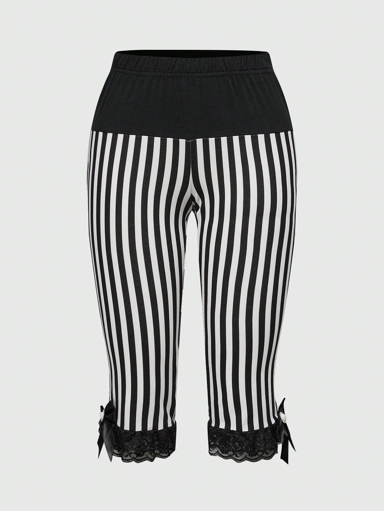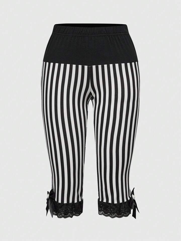ROMWE Avant Pantaloni 7/8 da donna a righe con colorblock di stile retrò dell'Europa meridionale, siciliani, con pizzo e fiocco