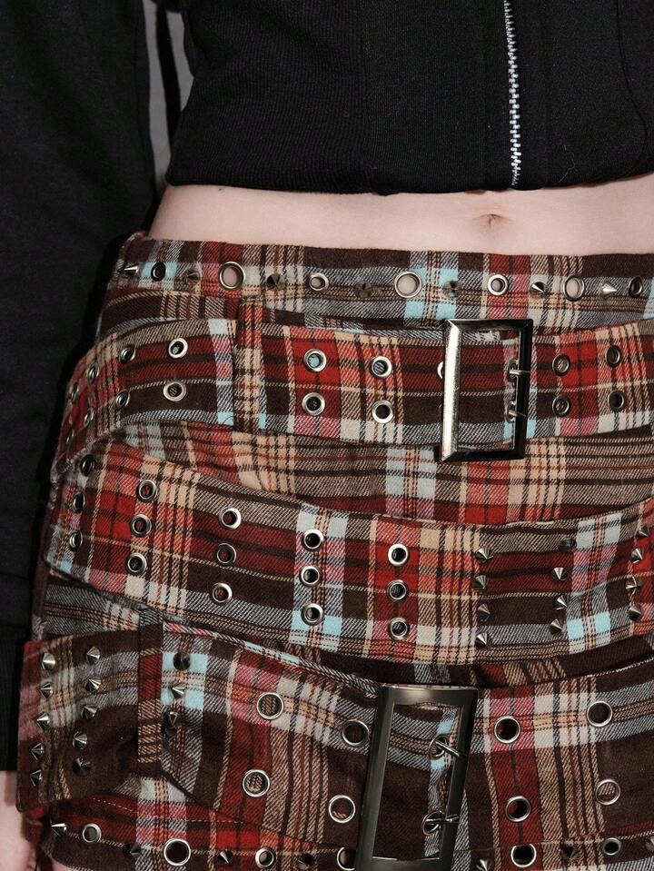 ROMWE Avant Gonna mini vita bassa con cintura in vita multistrato, stile sportivo retrò Y2K, con borchie, in stile universitario