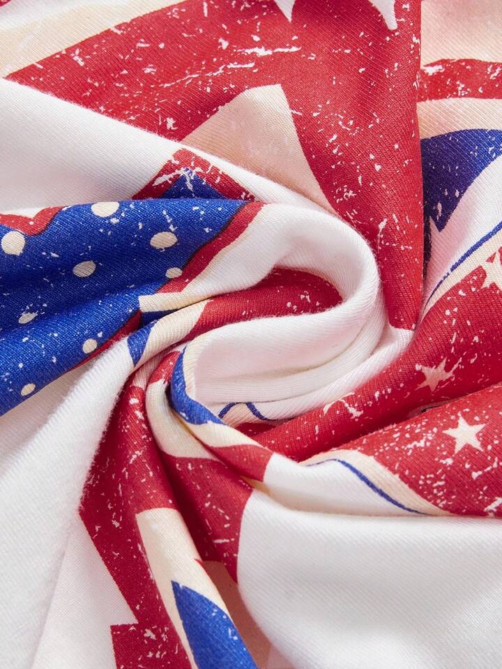 ROMWE Avant Maglietta da donna a maniche corte con scollo asimmetrico, con stampa di bandiera e labbra