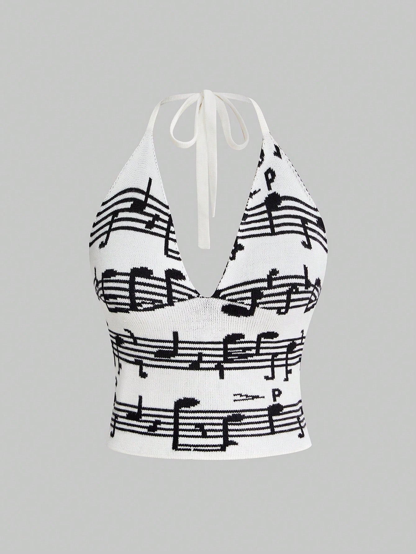 ROMWE Avant Maglia a collo a V profondo con stampa di note musicali all-over in stile Y2K per donna