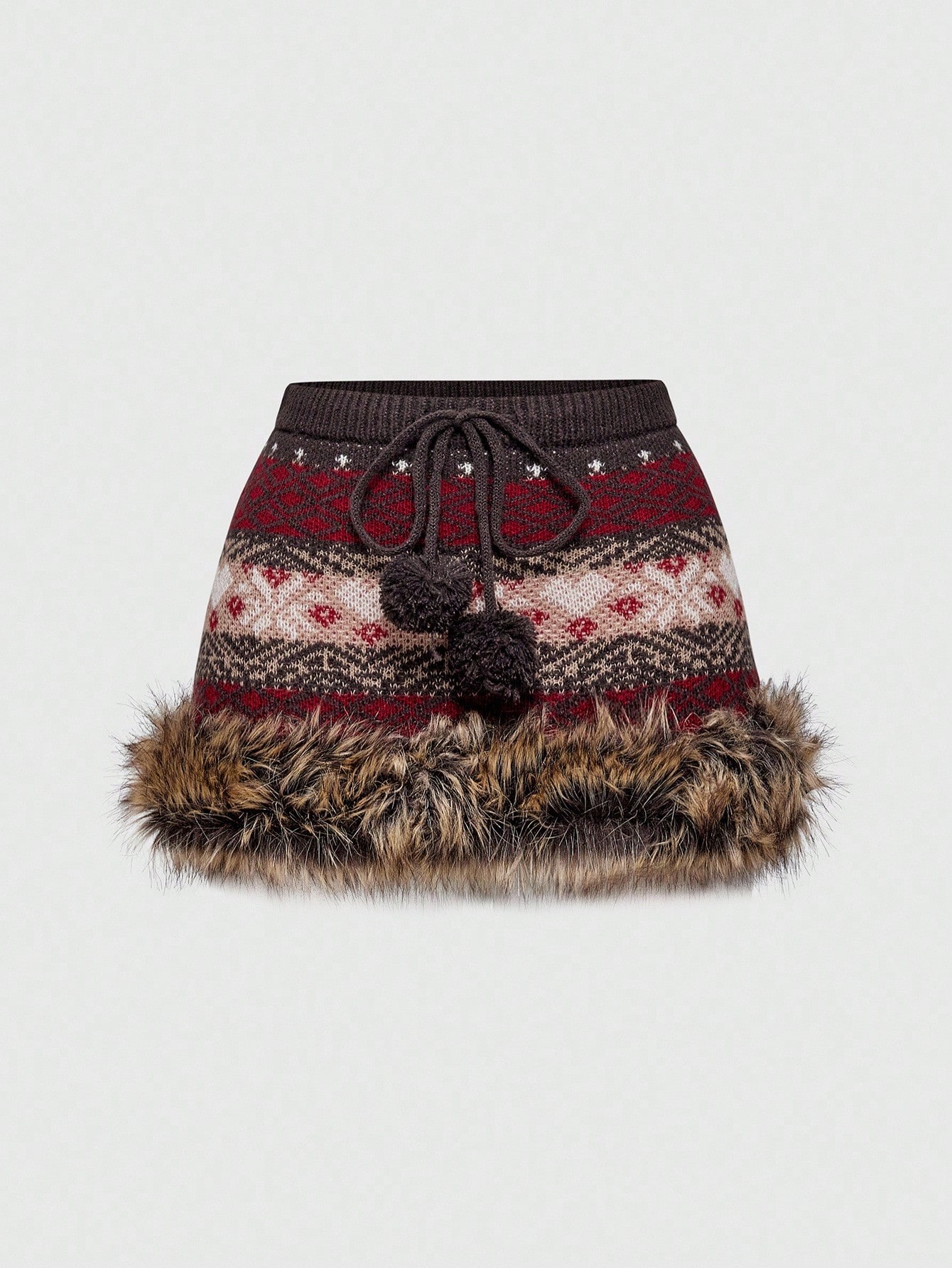 ROMWE Avant Maglione corto con motivo Fair Isle jacquard, stile Y2K, adatto per autunno/inverno