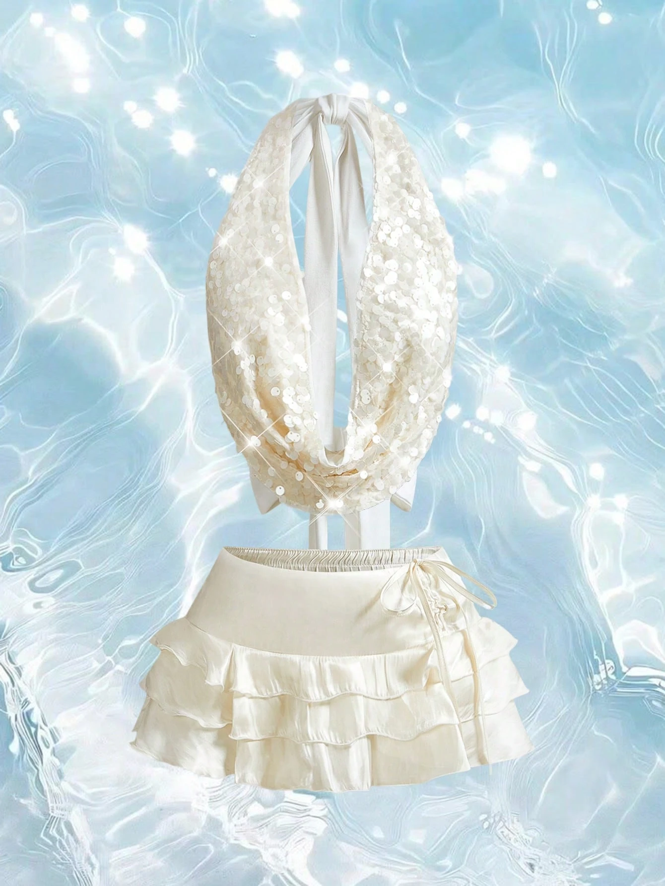 ROMWE Avant Set da 2 pezzi composto da top corto con spalline sottili e schiena scoperta e minigonna a vita bassa, adatto per spiaggia/vacanza