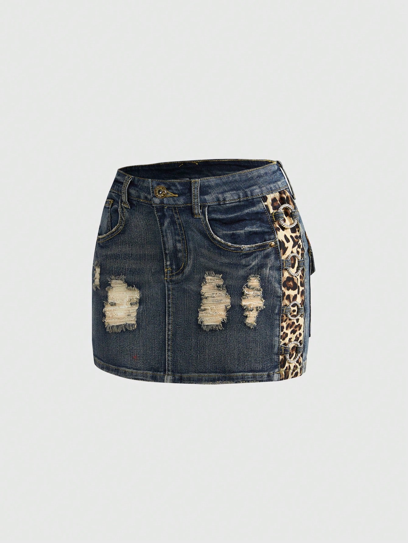 ROMWE Avant Gonna di jeans mini aderente in vita bassa, stile Y2K Harajuku Gyaru, stampa leopardata vintage, vita super bassa