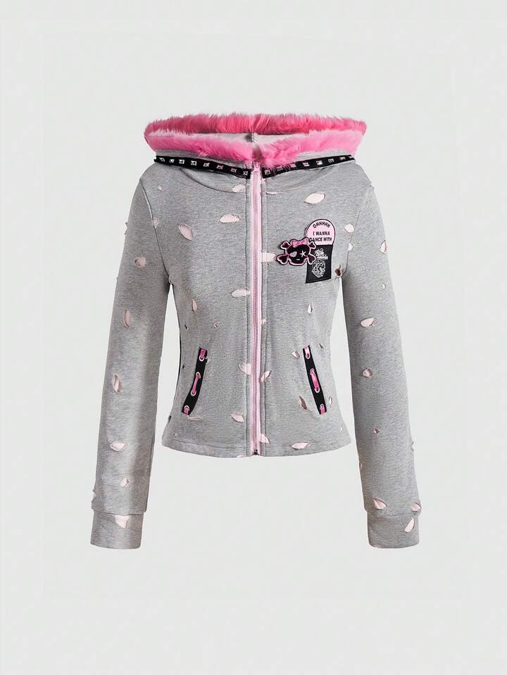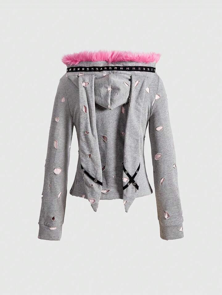 ROMWE Avant Giacca con cappuccio stile Y2K punk con orecchie da coniglio per donne