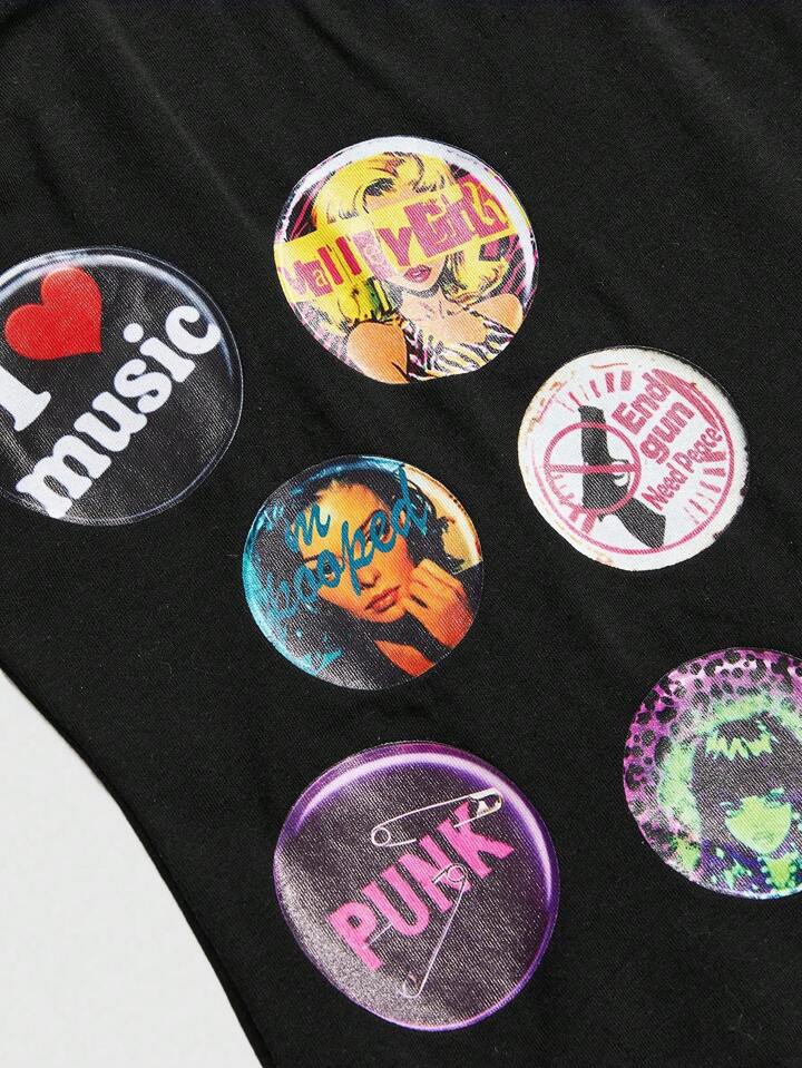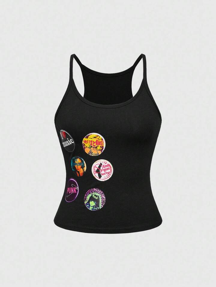 ROMWE Avant Stile americano vintage Y2K, camisola sexy ricamata con finto Badge