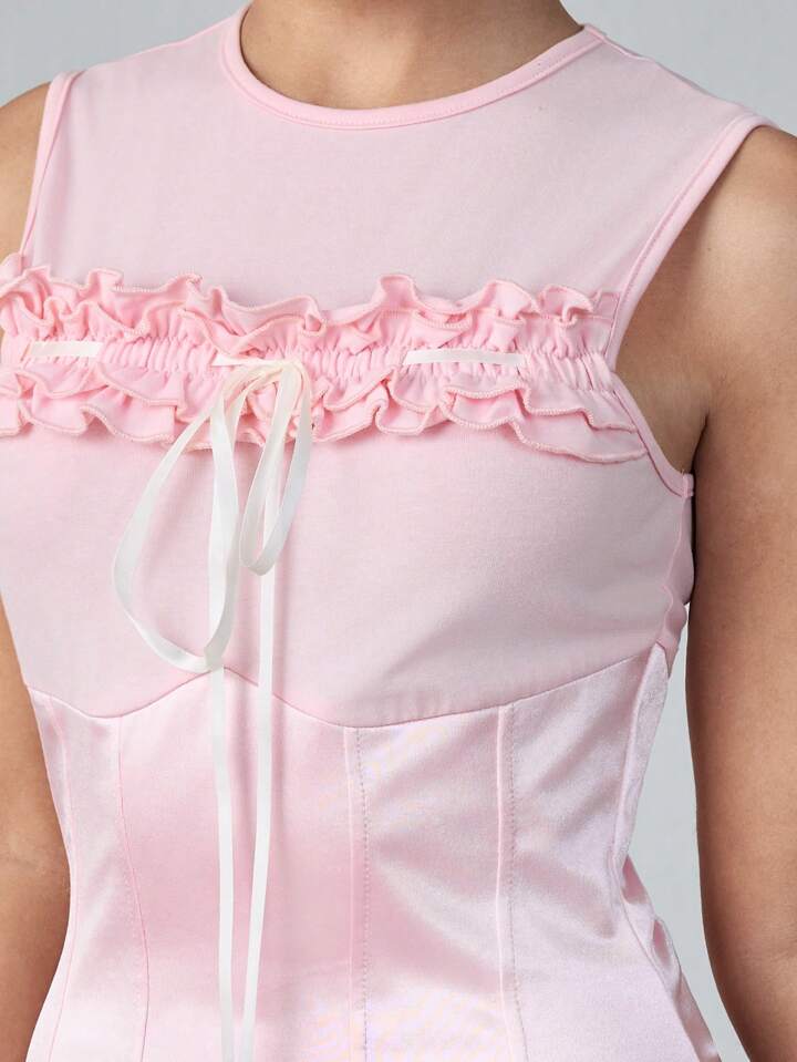 ROMWE Avant Mini abito da donna in stile Y2K retro, in satin, con patchwork e balze, stile balletto atletico