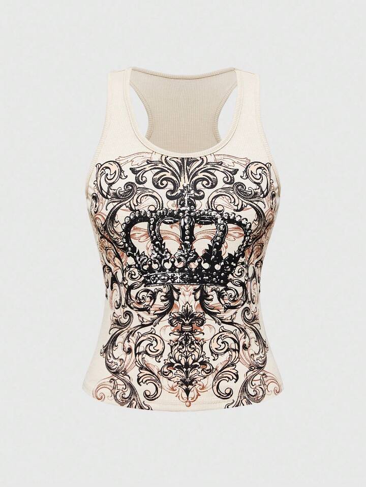 ROMWE Avant Crop top con corona di strass in stile Y2K per donna