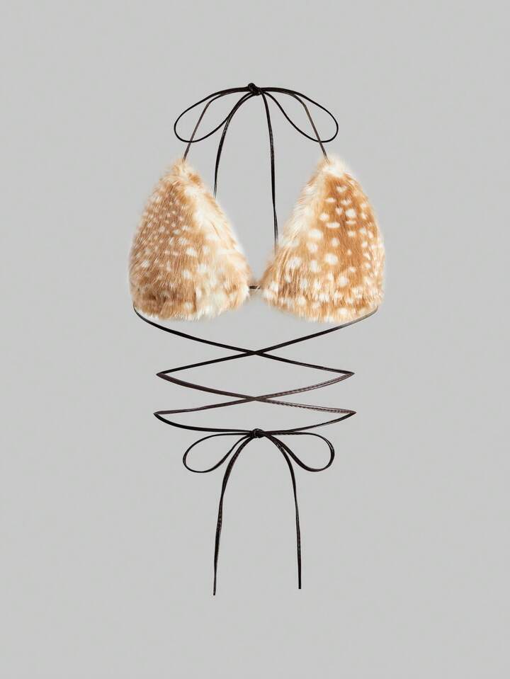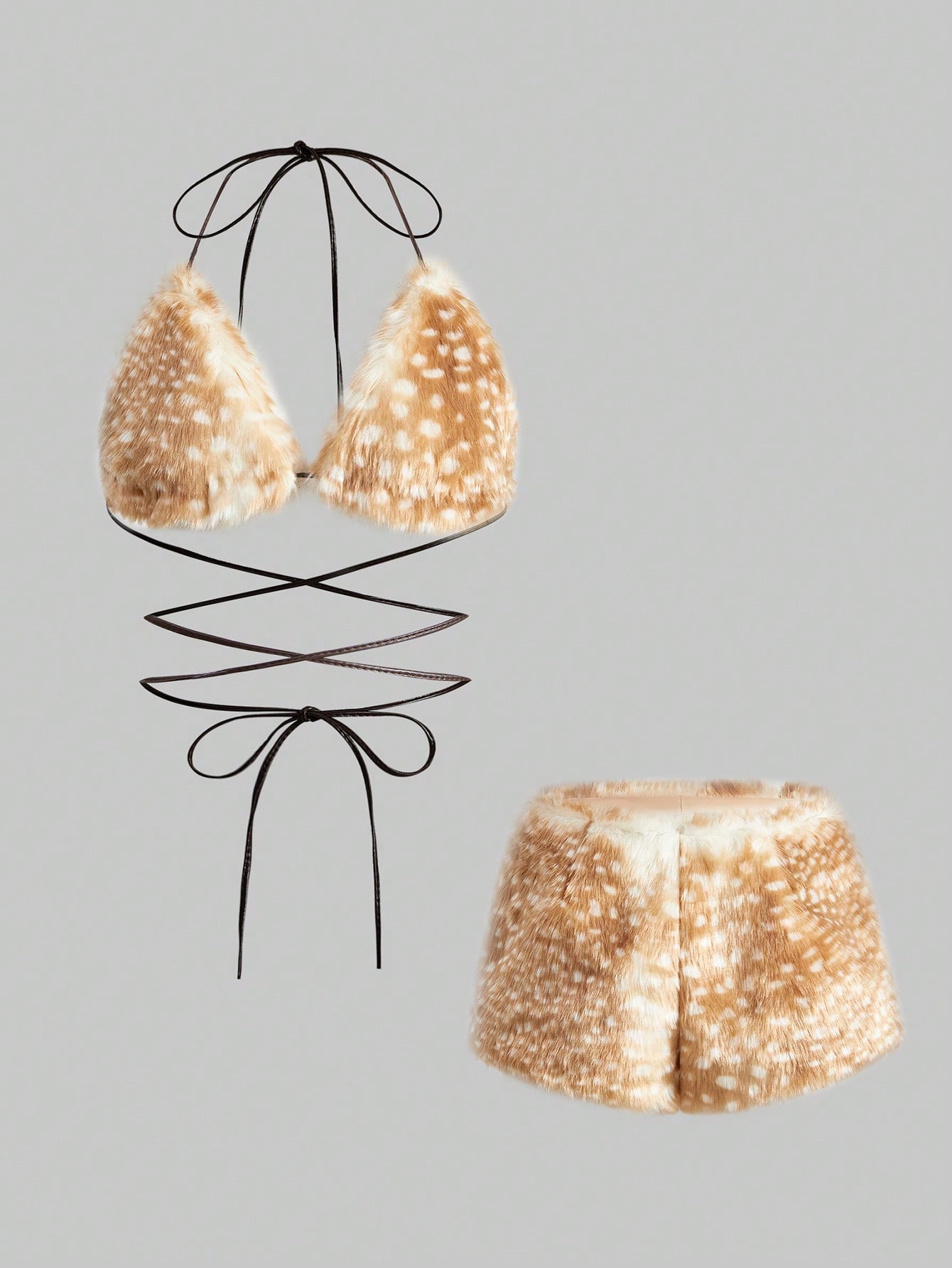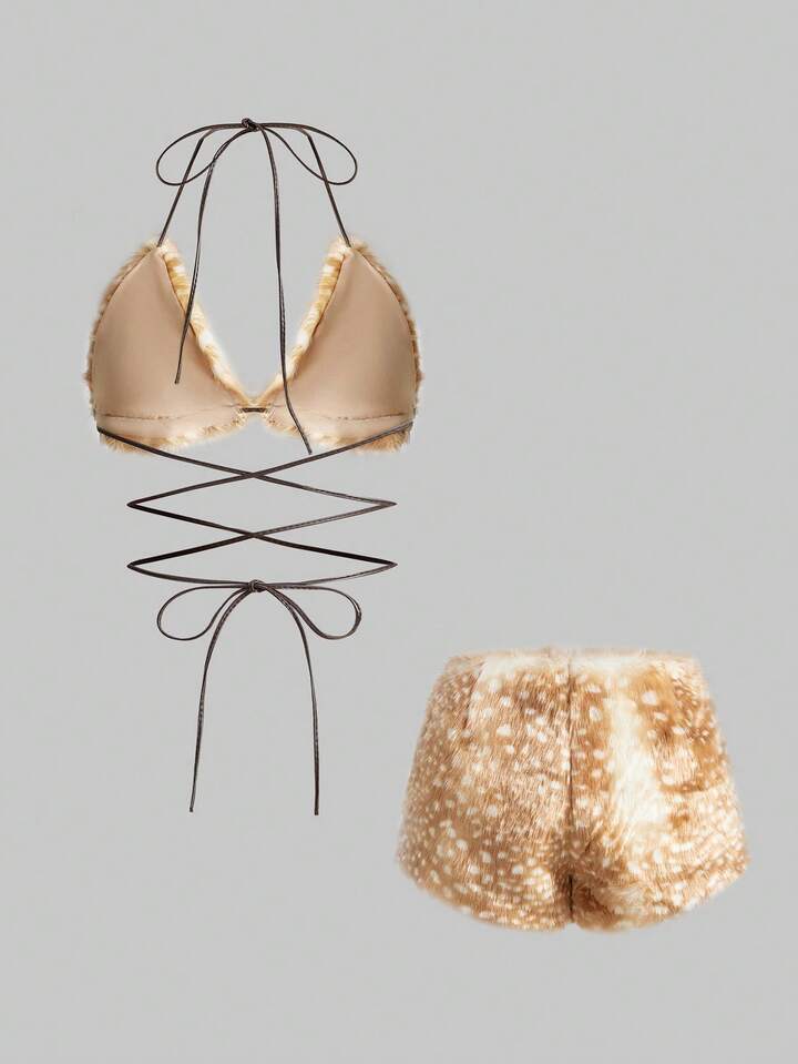 ROMWE Avant Set da 2 pezzi composto da bikini a stampa a pois di cervo sexy e morbido e pantaloncini super a vita bassa in stile Y2K per donne