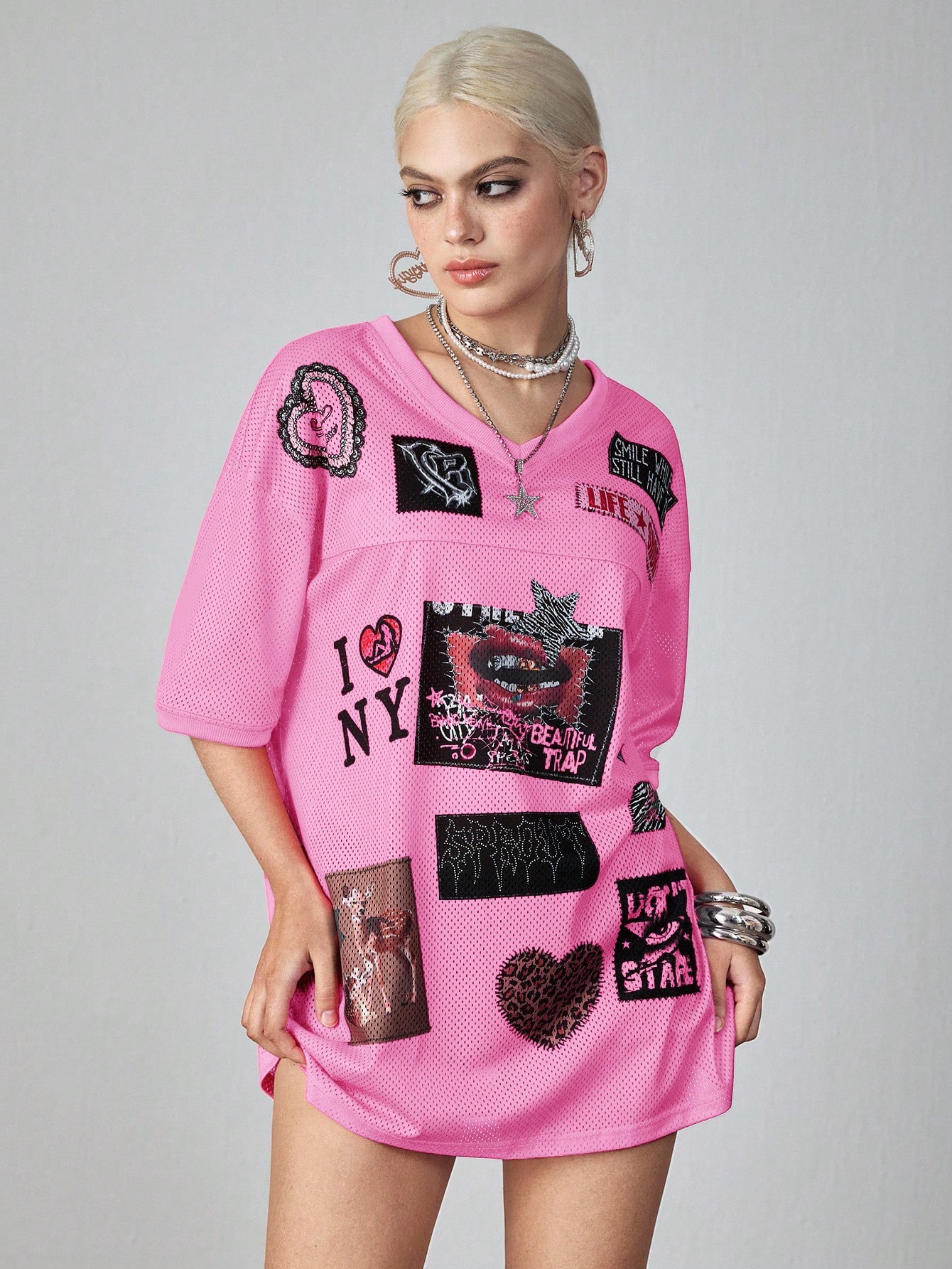 ROMWE Avant maglietta da donna con scollo a V e spalle scoperte, motivo grafico in stile Y2K, sexy