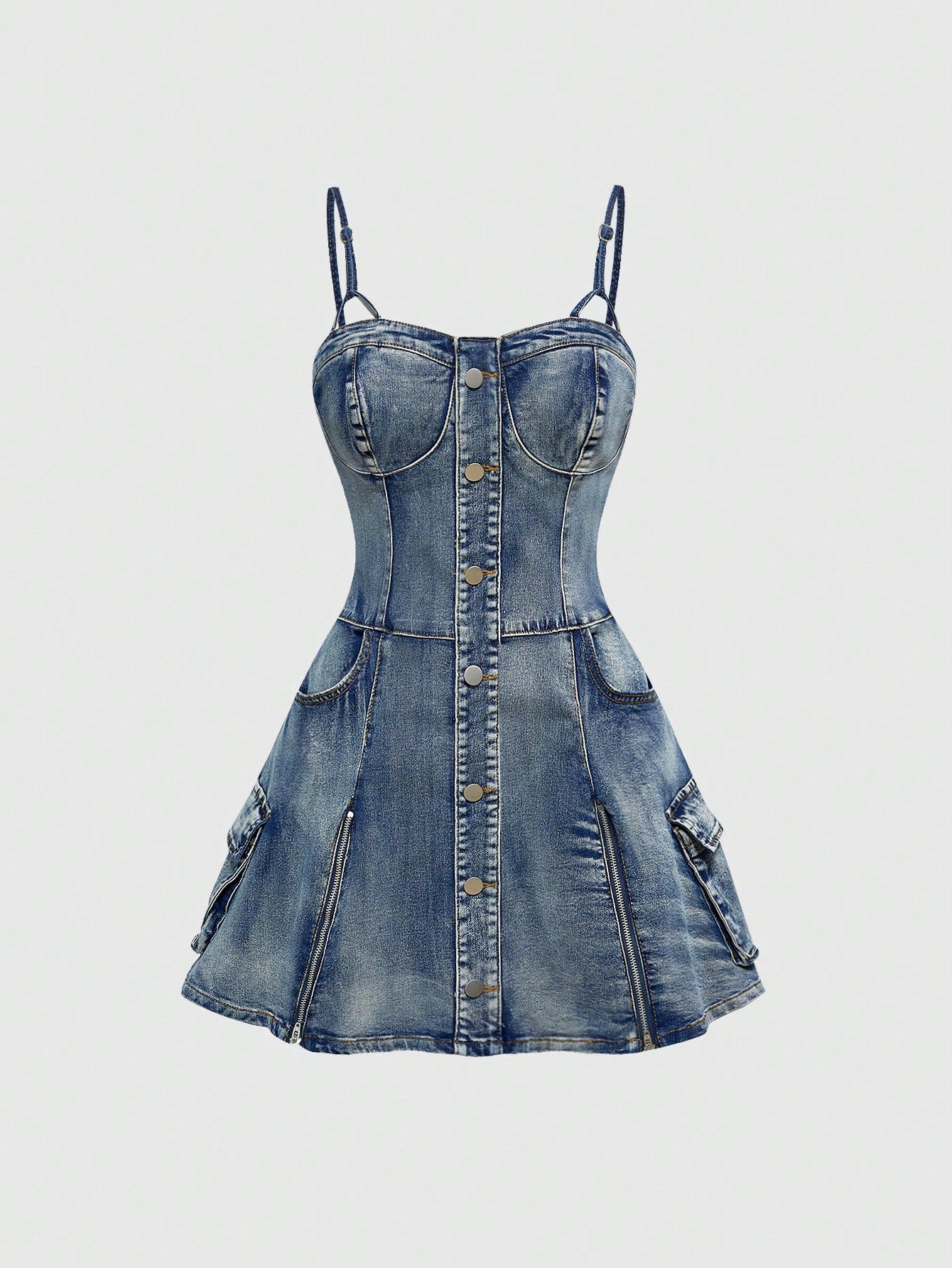 ROMWE Avant Vestito minigonna in denim lavato con vita bassa e chiusura lampo, stile vintage Y2K