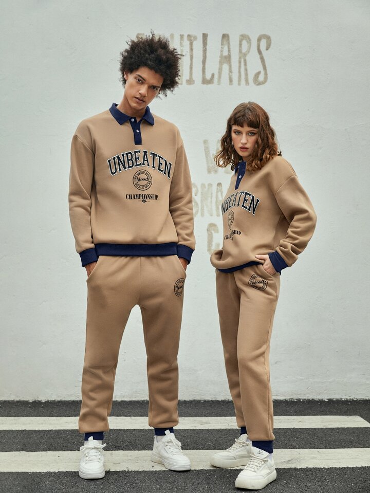 ROMWE UNISEX 1 pezzo con grafica lettera contrasto polo Felpe & 1 pezzo Pantaloni sportivi