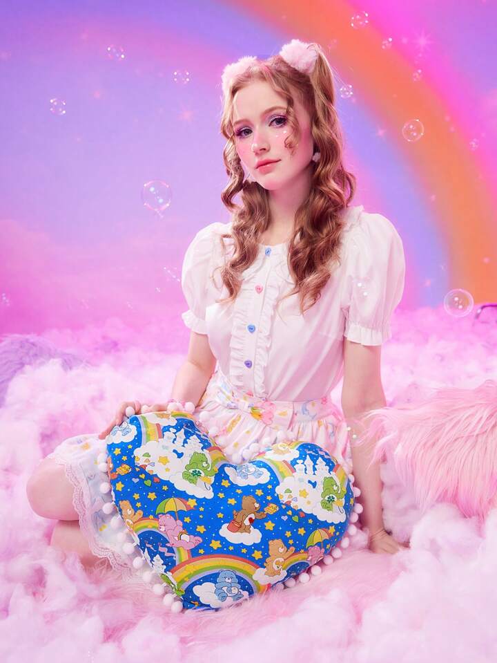 ROMWE X Care Bears 1 pezzo orso di fumetto a forma di cuore Cuscini decorativi , carino Cuscini decorativi
