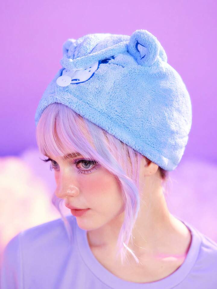 ROMWE X Care Bears Cuffia per asciugare i capelli con design a cartone animato, per uso domestico in bagno, cappuccio per asciugare i capelli, avvolgimento con asciugamano