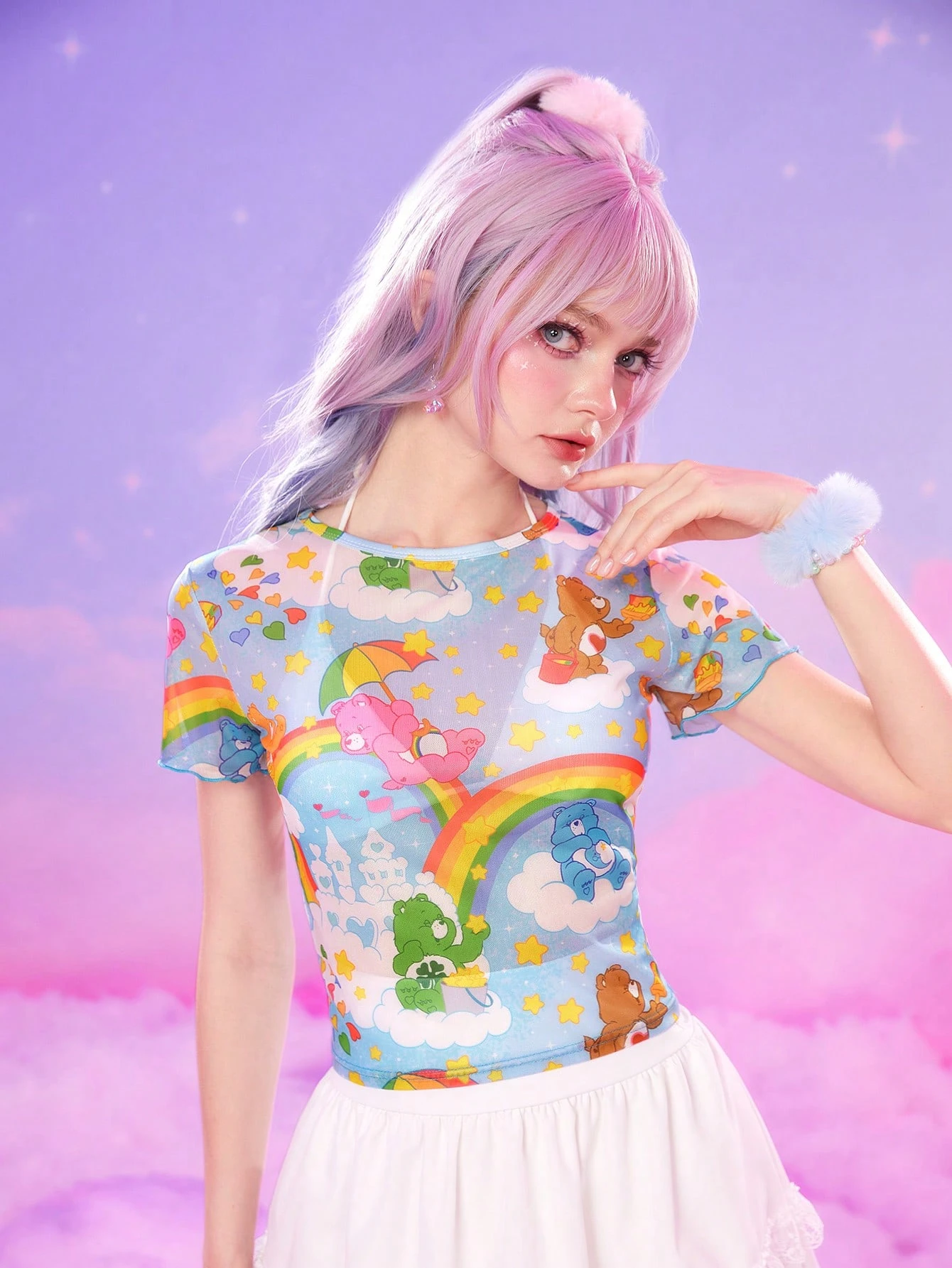 ROMWE X Care Bears Top con grafica fumetto mesh