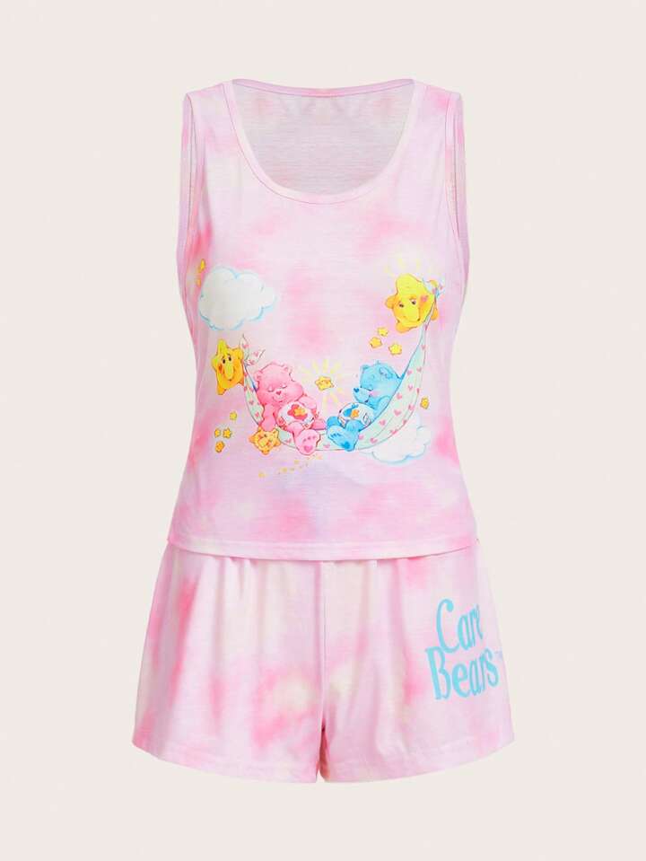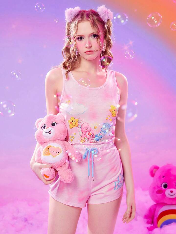 ROMWE X Care Bears Set pigiama con grafica fumetto tie dye