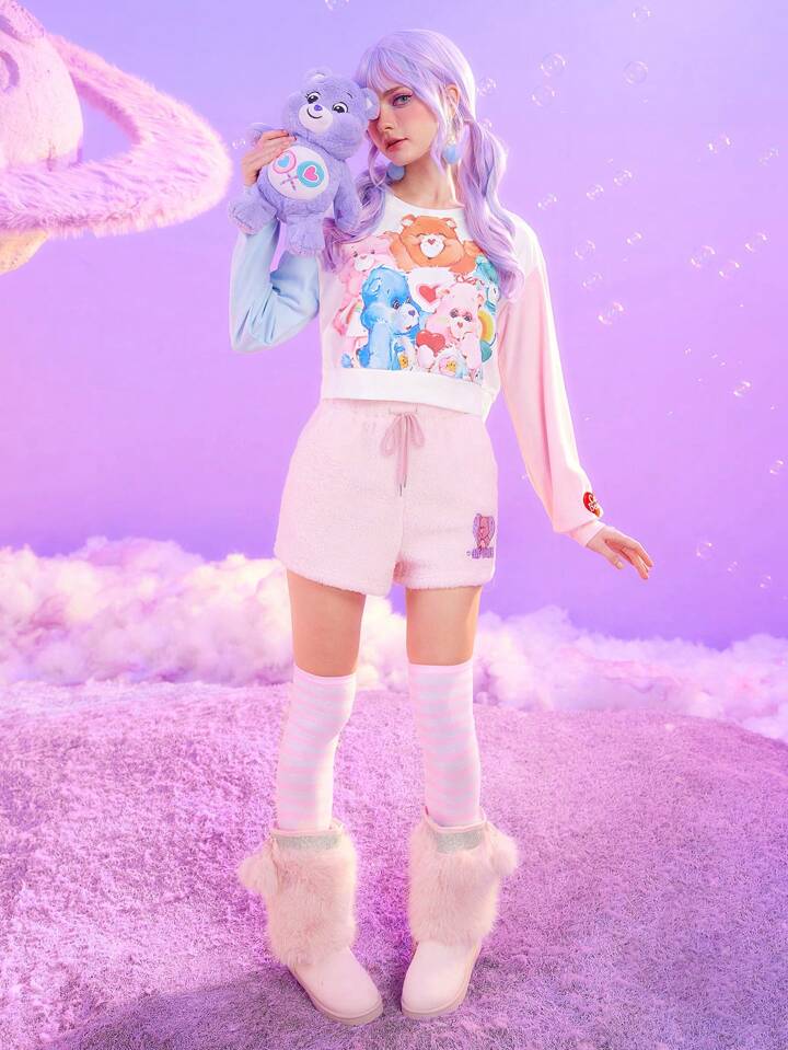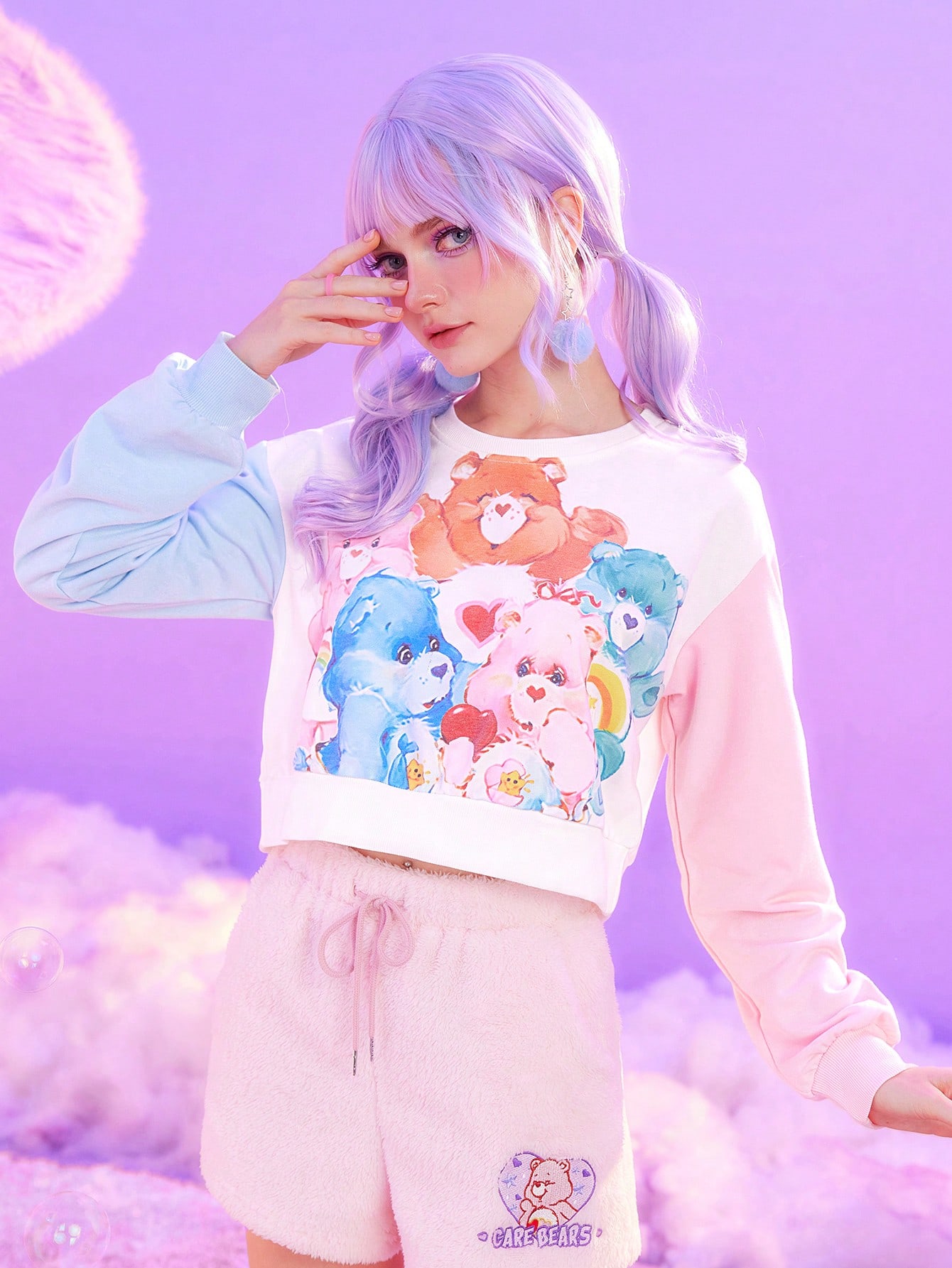 ROMWE X Care Bears Felpa A Blocchi Di Colore Con Simpatico Orsetto Cartone Animato