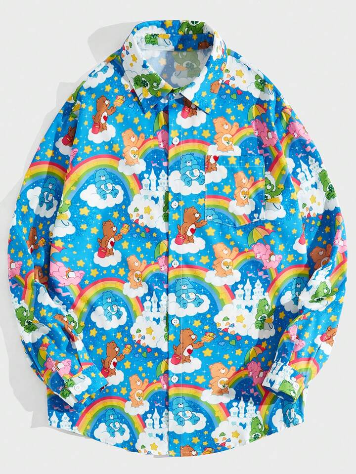 ROMWE X Care Bears Uomo Camicia orso & arcobaleno stampata
