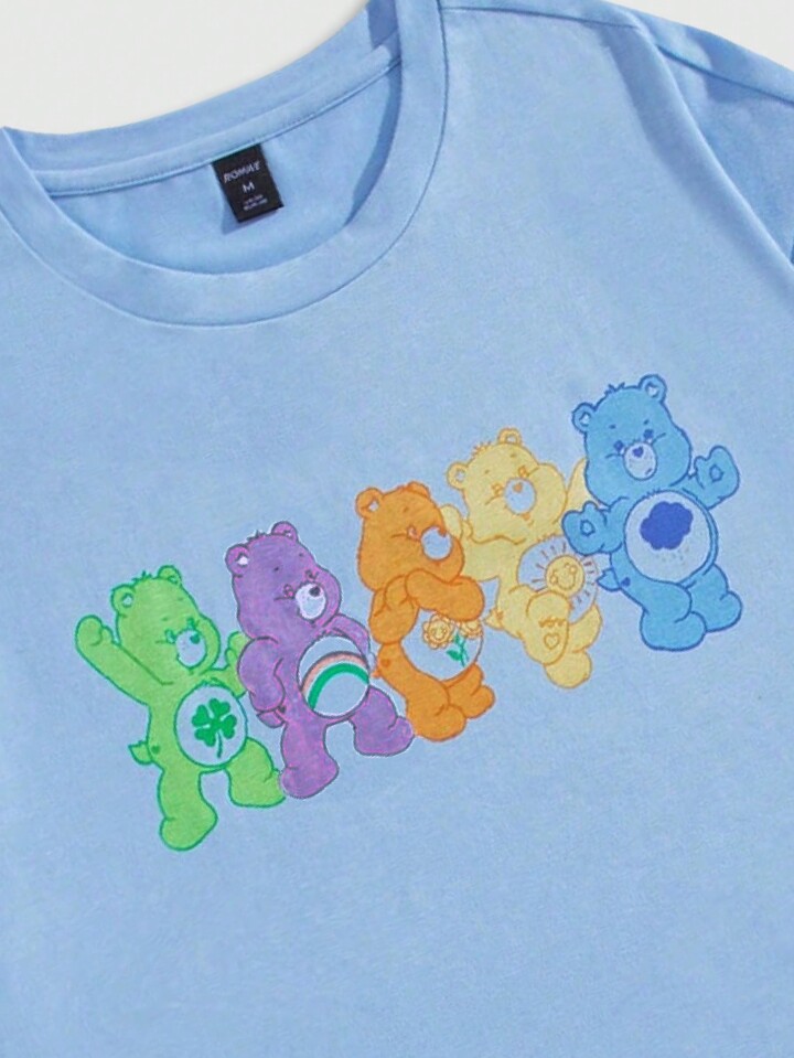 ROMWE X Care Bears T-shirt con grafica a cartone animato spalle scoperte per uomo, scuola