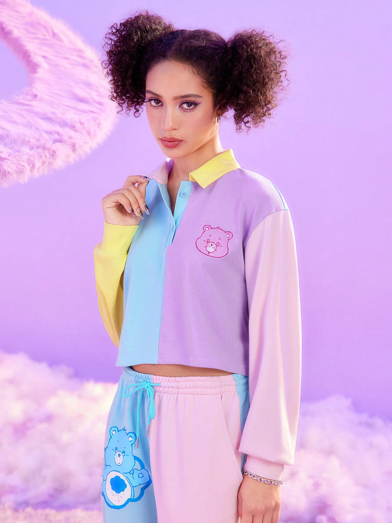 ROMWE X Care Bears Felpe multicolore patchwork teddy orso ricamato