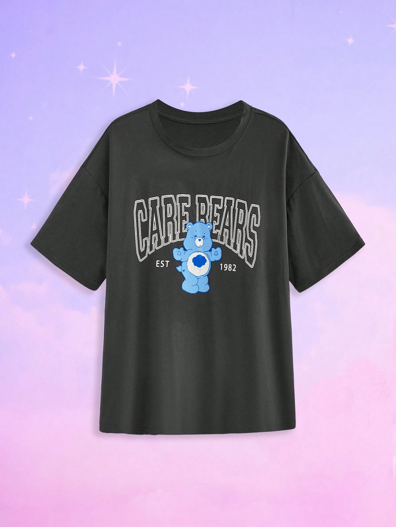 ROMWE X Care Bears Maglietta estiva a girocollo con grafica di orso cartoni animati e lettering, in morbido tessuto, taglie comode