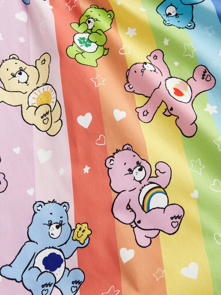 ROMWE X Care Bears Gonna a campana estiva da donna casual, carina, con stampa a righe arcobaleno e orsetto cartone animato, con bordo a volant a contrasto