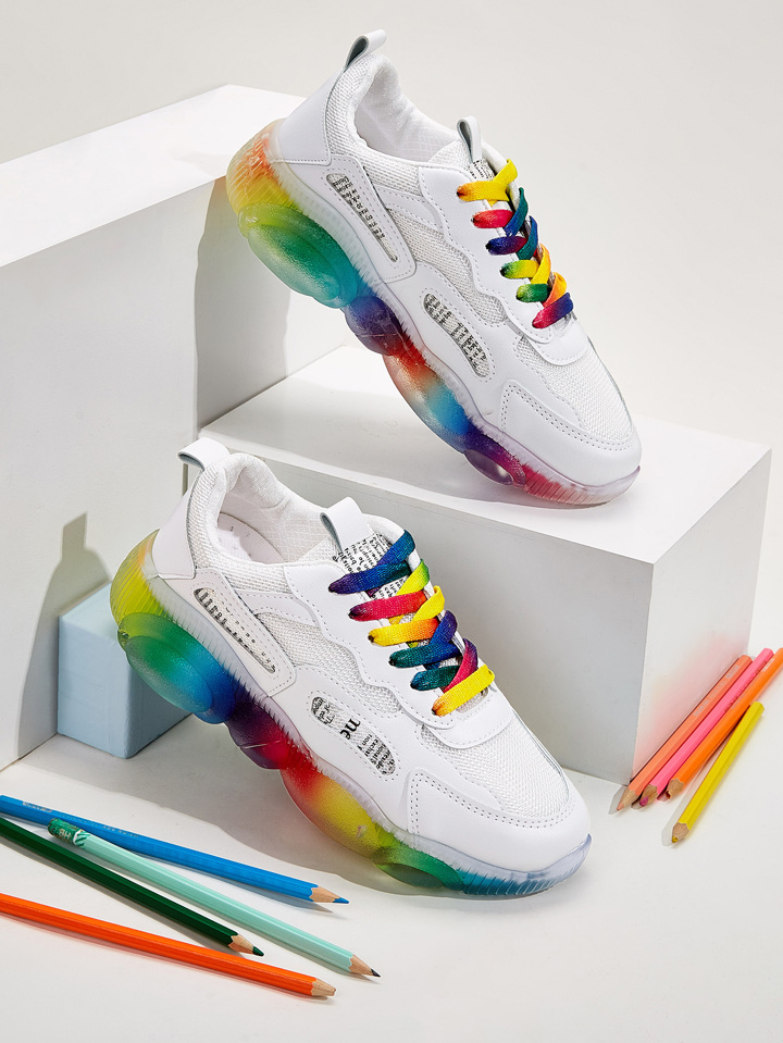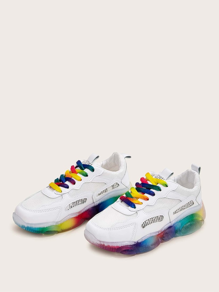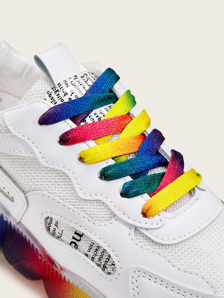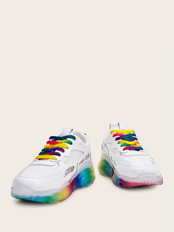 Sneakers con suola spessa con lacci frontali arcobaleno