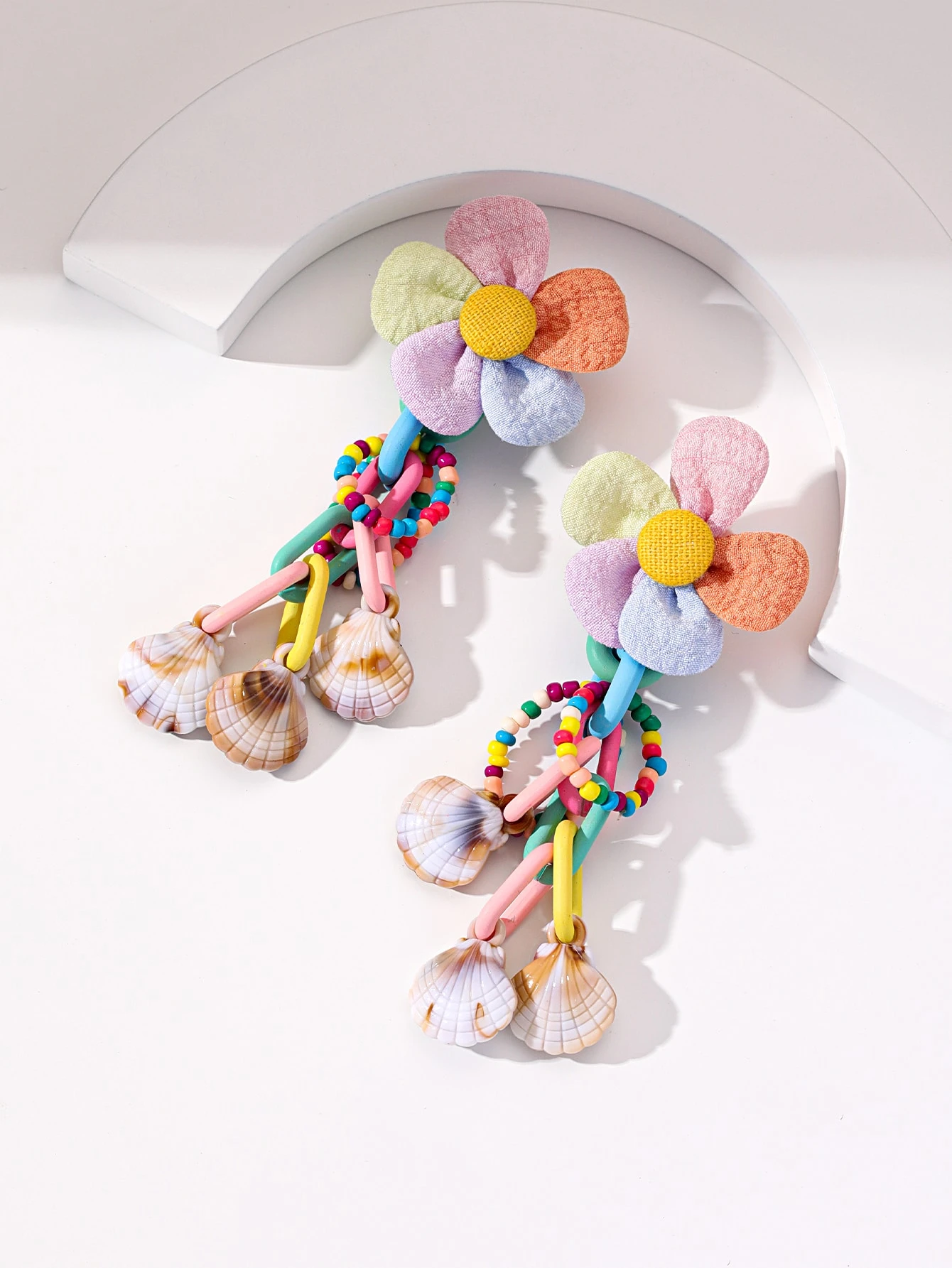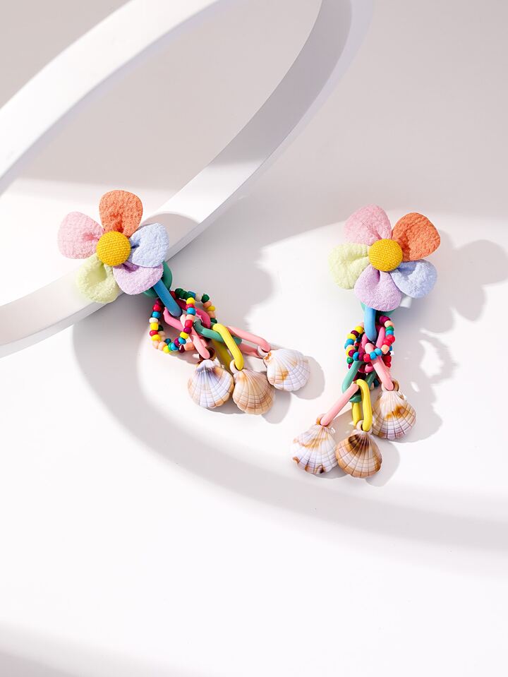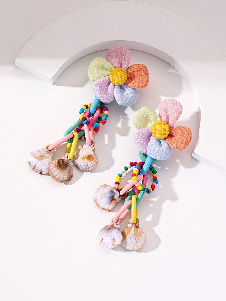 Orecchini pendenti colore casuale conchiglia & con decorazione floreale