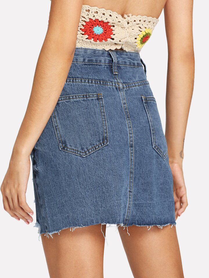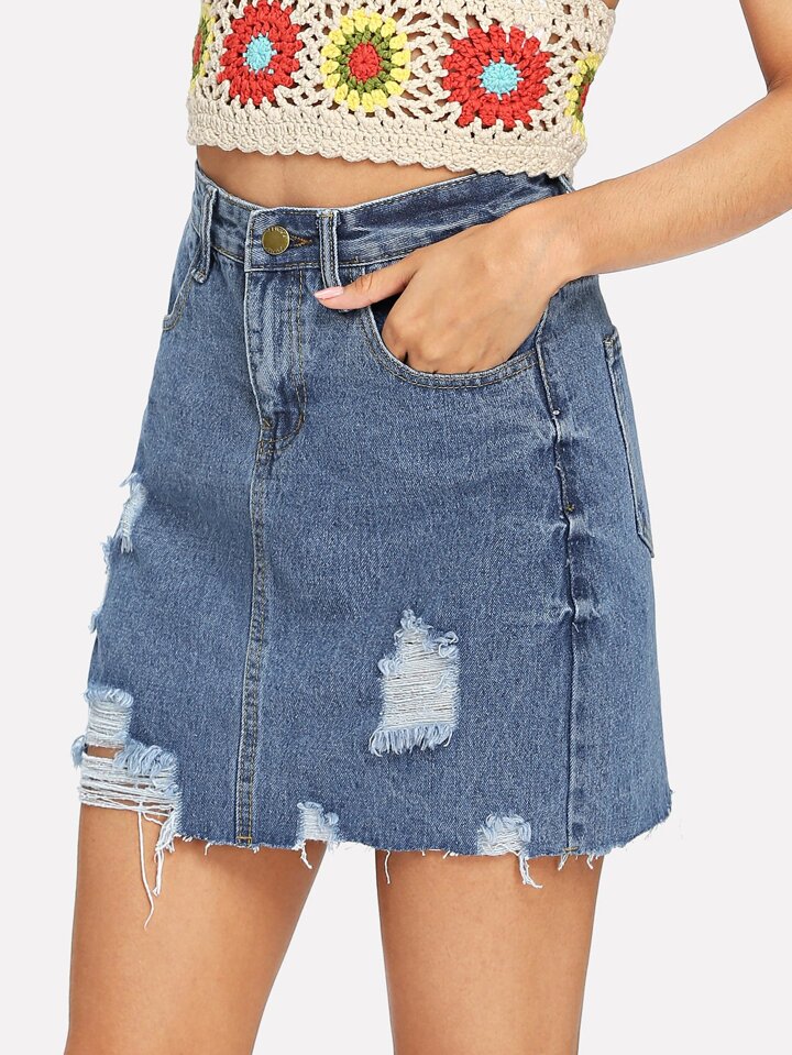 Gonna in denim bordo grezzo con strappati