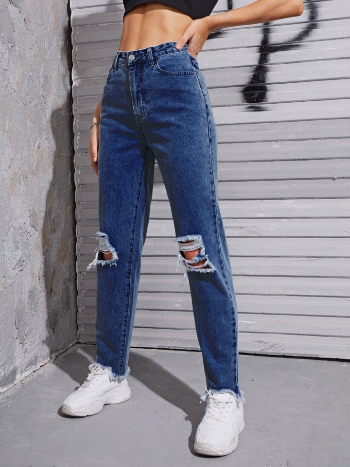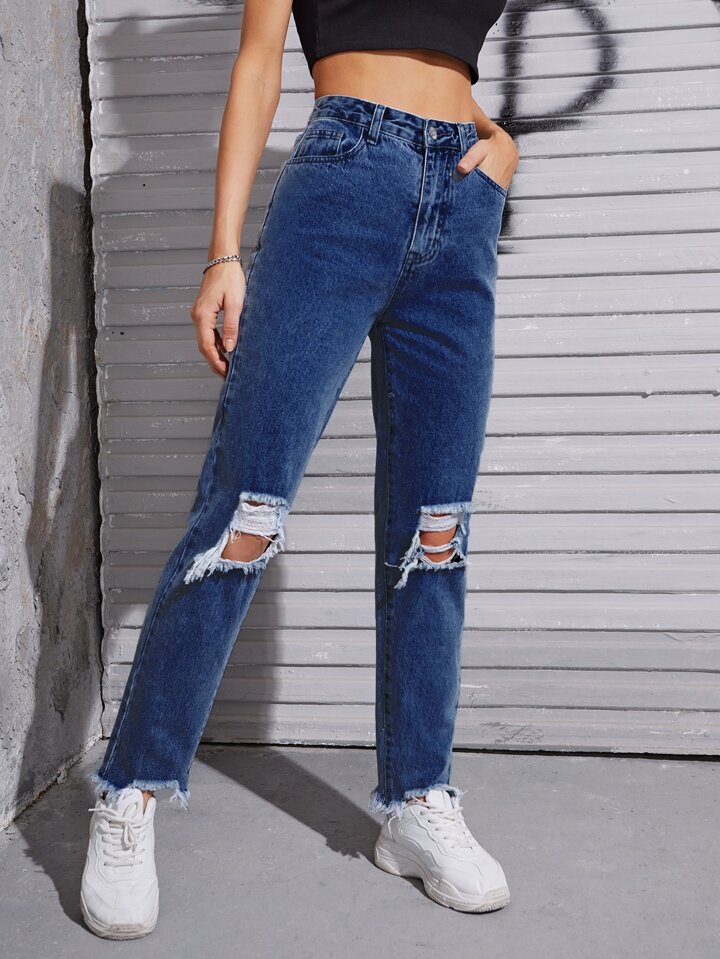 Jeans strappati con orlo sfrangiato