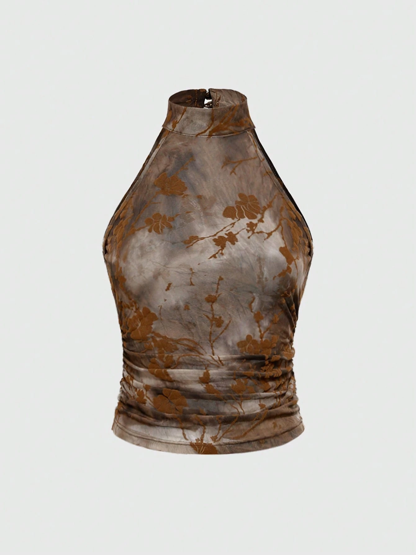 Top corto da donna con collo a lupetto, plissettato in vita, in stile retrò