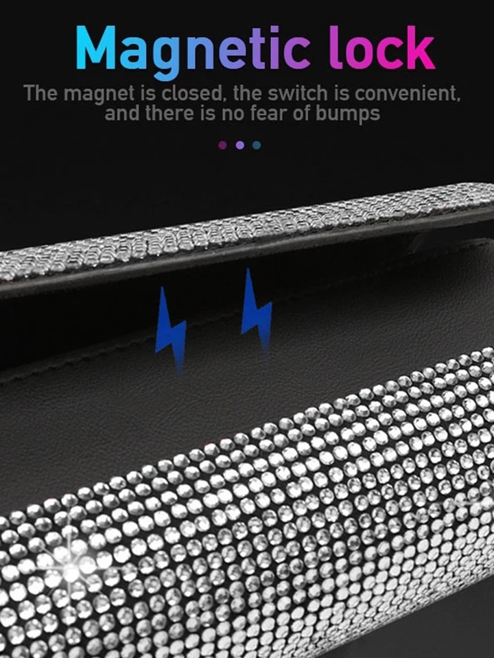 Scatola portaggetti per auto con decorazione in strass, accessori interni per auto