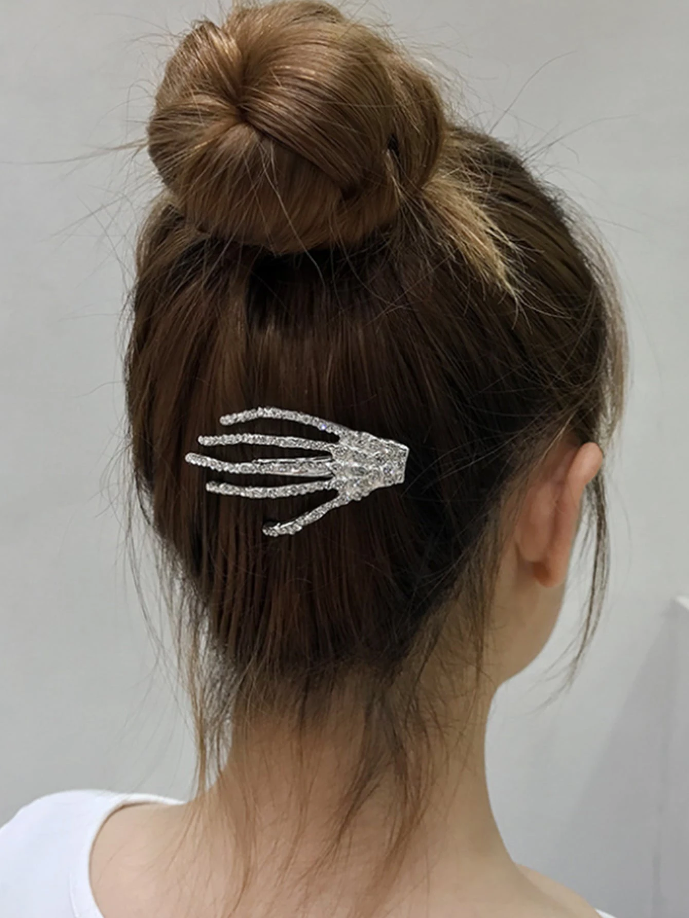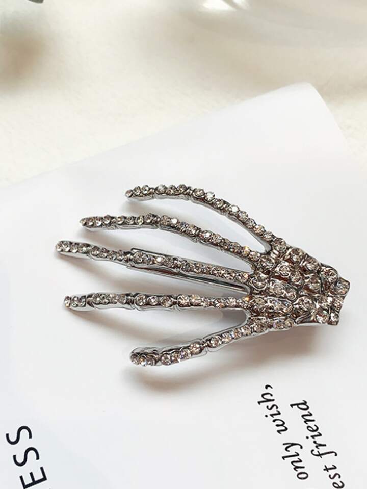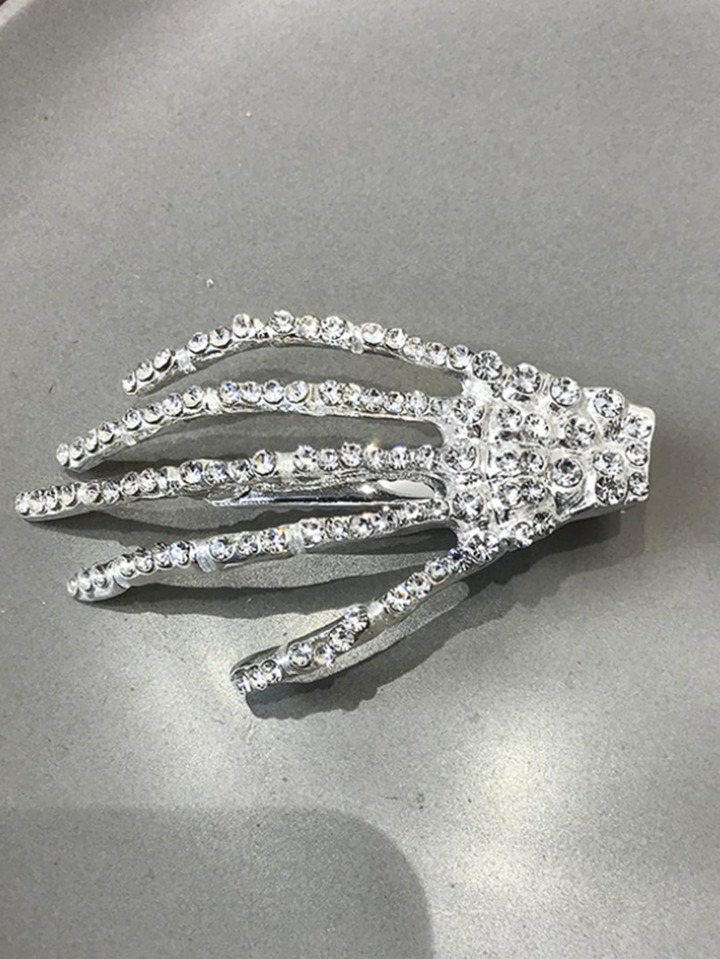 Fermaglio per capelli con strass decorazione a mano scheletro