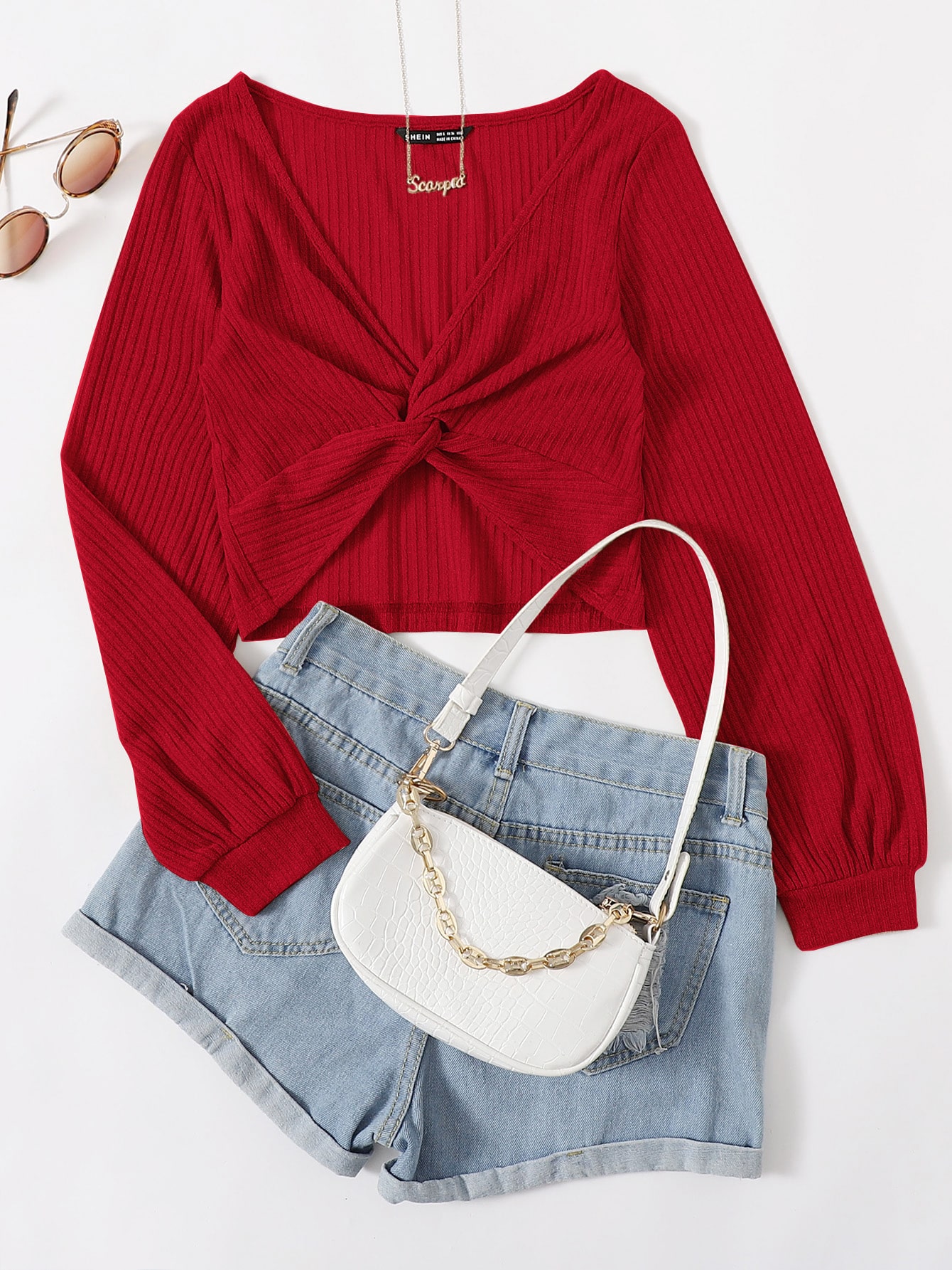 Top corto a costine contorto