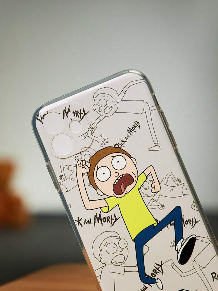 Rick and Morty | ROMWE 1 pezzo Custodia per telefono in TPU con grafica di lettere e cartoni animati, compatibile con iPhone