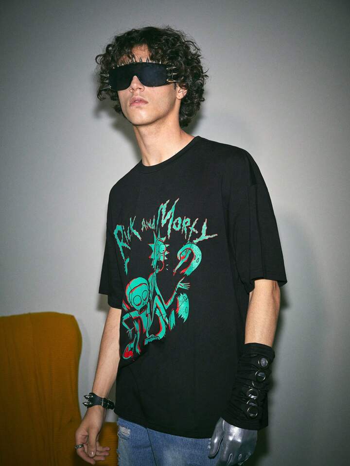 Rick and Morty | ROMWE Maglietta uomo con grafica a lettere e cartoni animati, Scuola