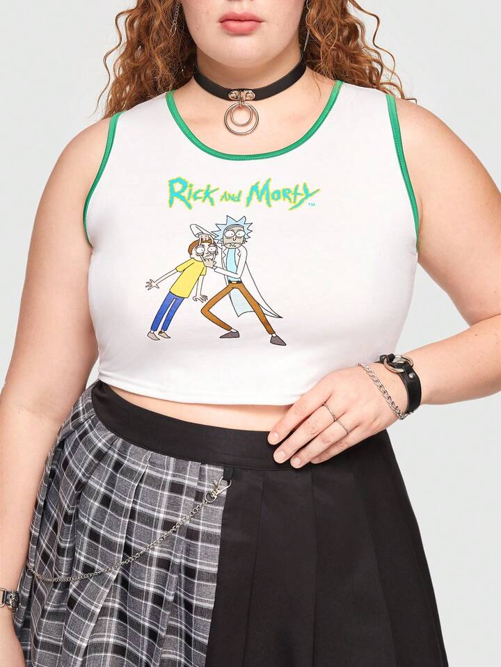 Rick and Morty | ROMWE Taglie Forti Canotta con grafica figura e lettera bordo a contrasto