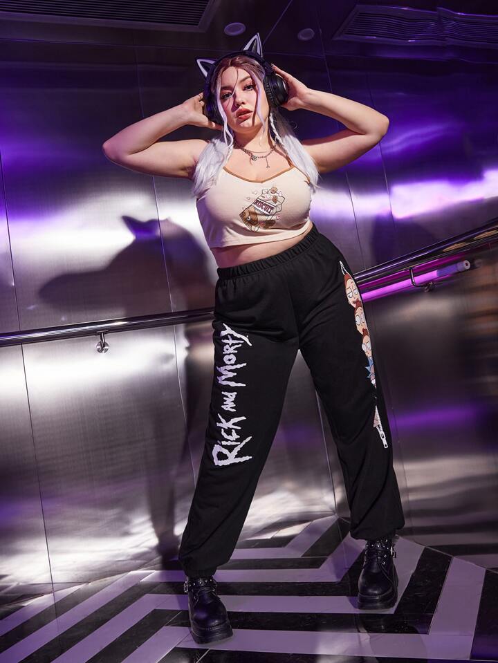 Rick and Morty | ROMWE Taglie Forti Pantaloni sportivi con grafica lettera