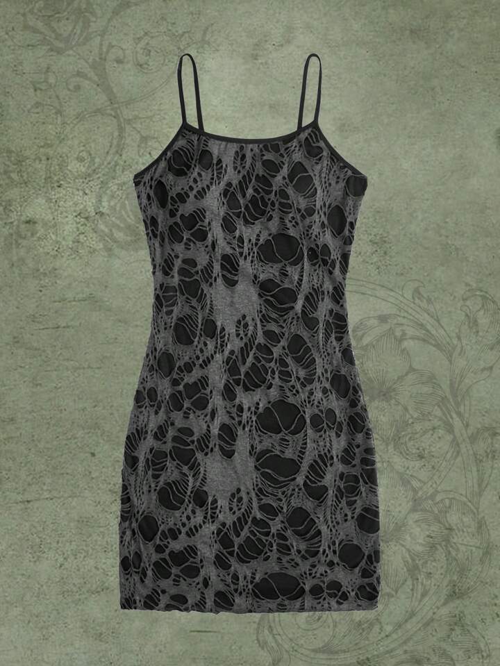 Abito con bretelle sottile con strappati bordo a contrasto