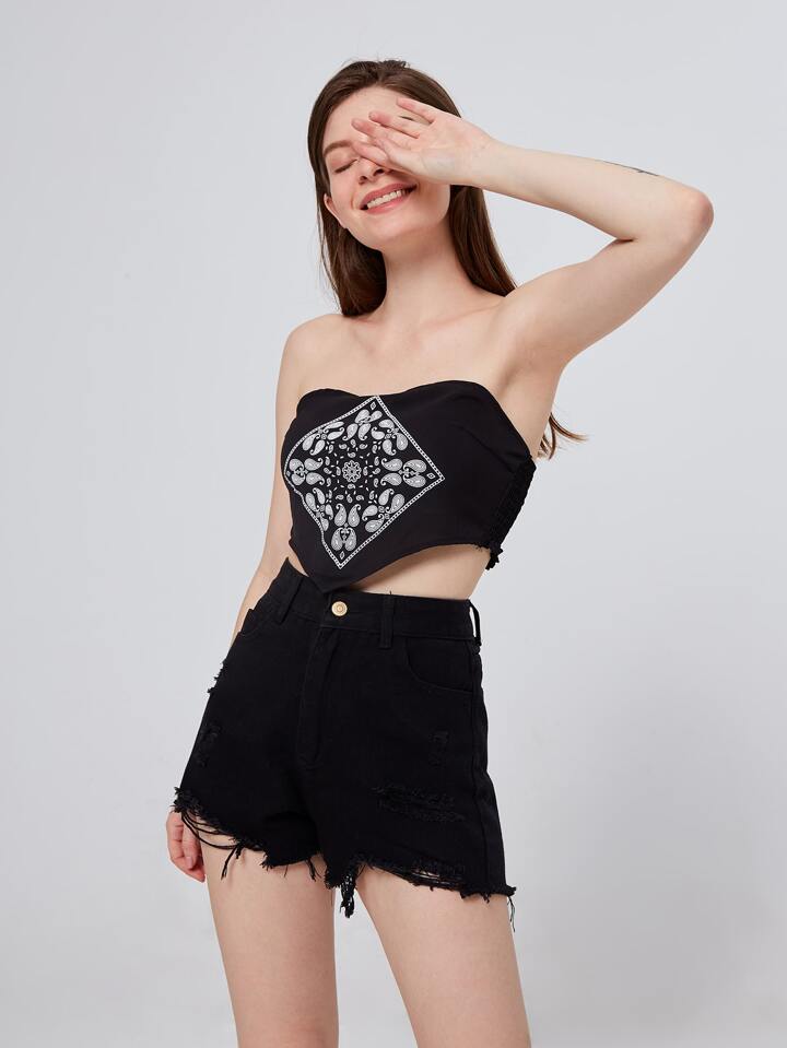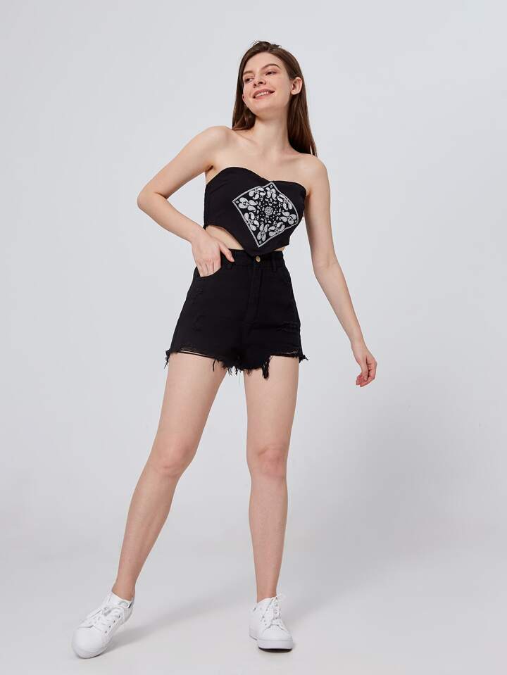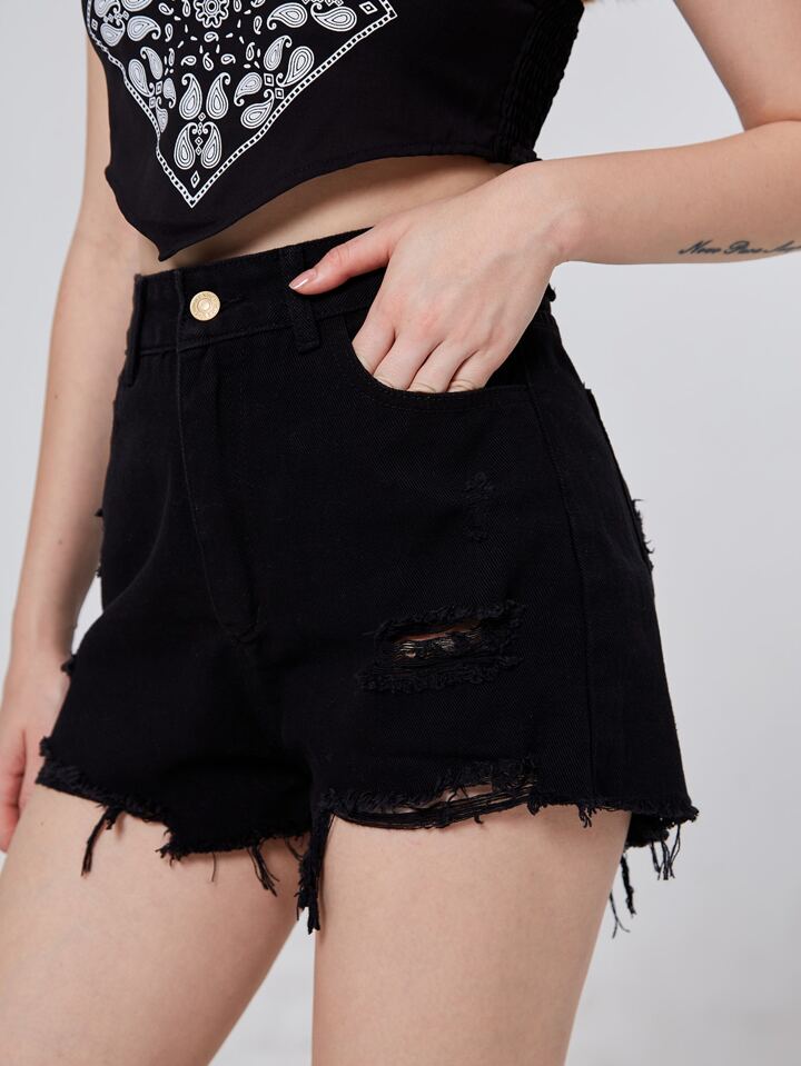 Shorts in denim strappati con orlo sfrangiato