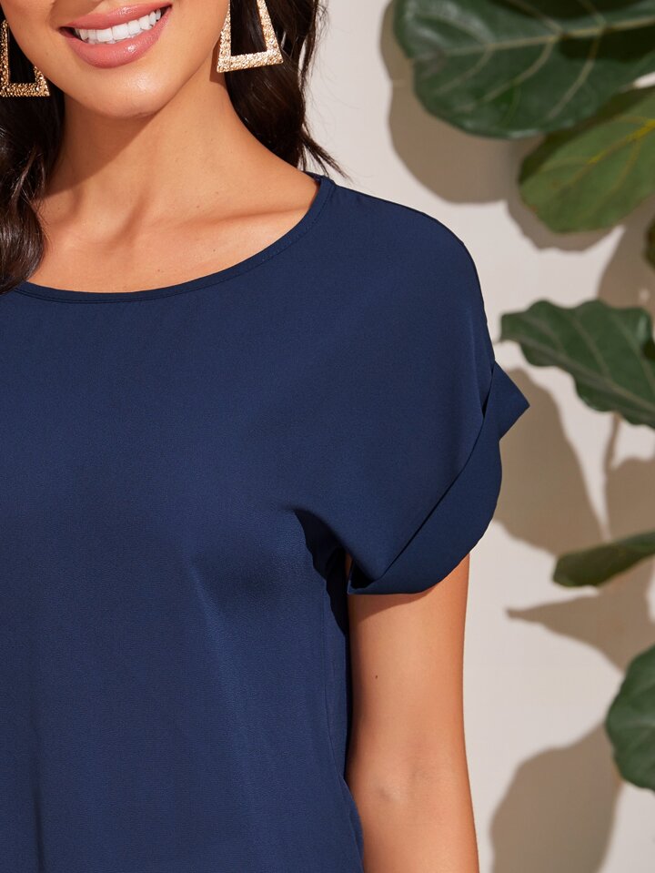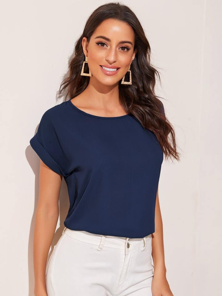 Top monocolore con polsino arrotolato e manica a pipistrello