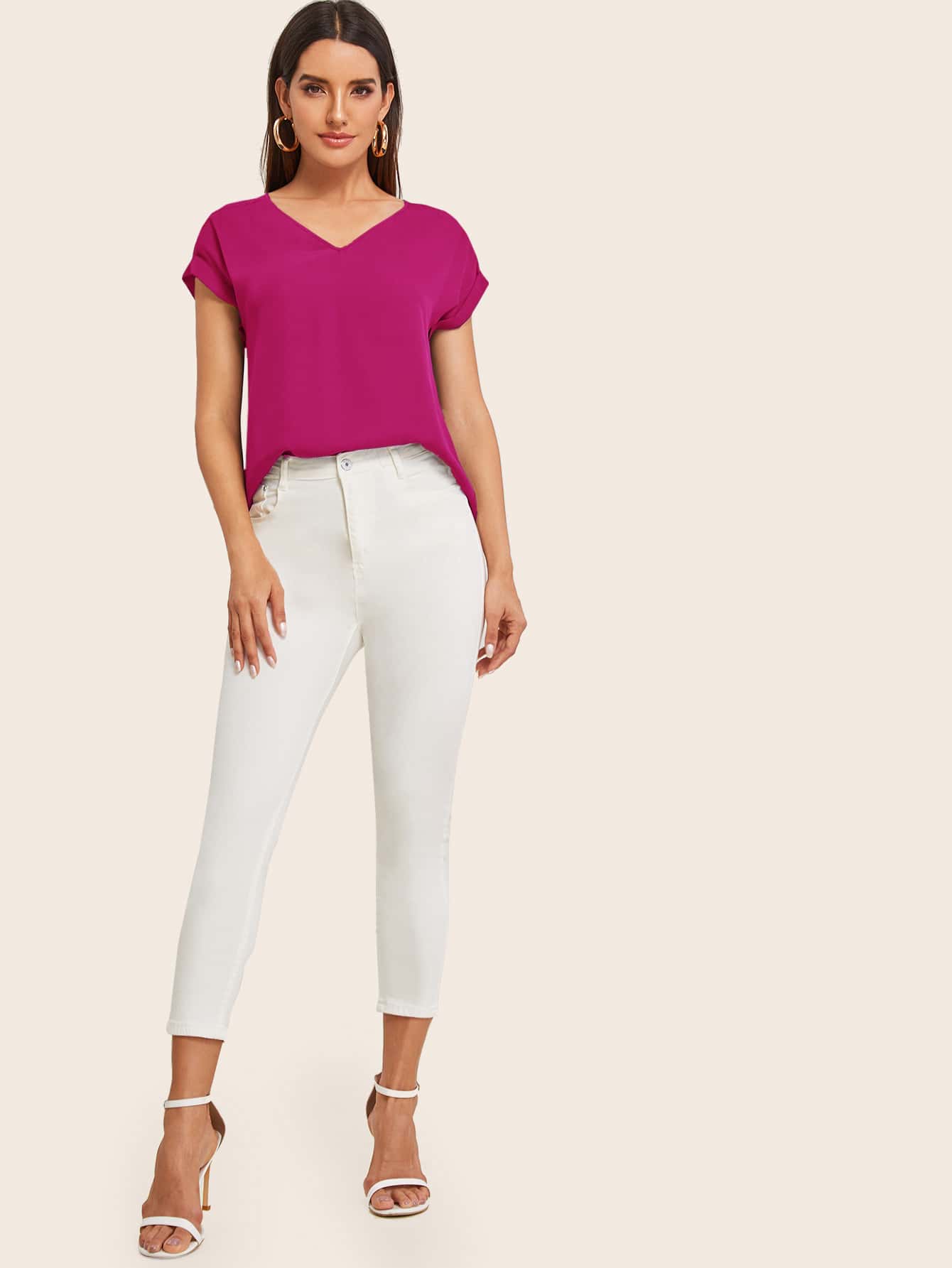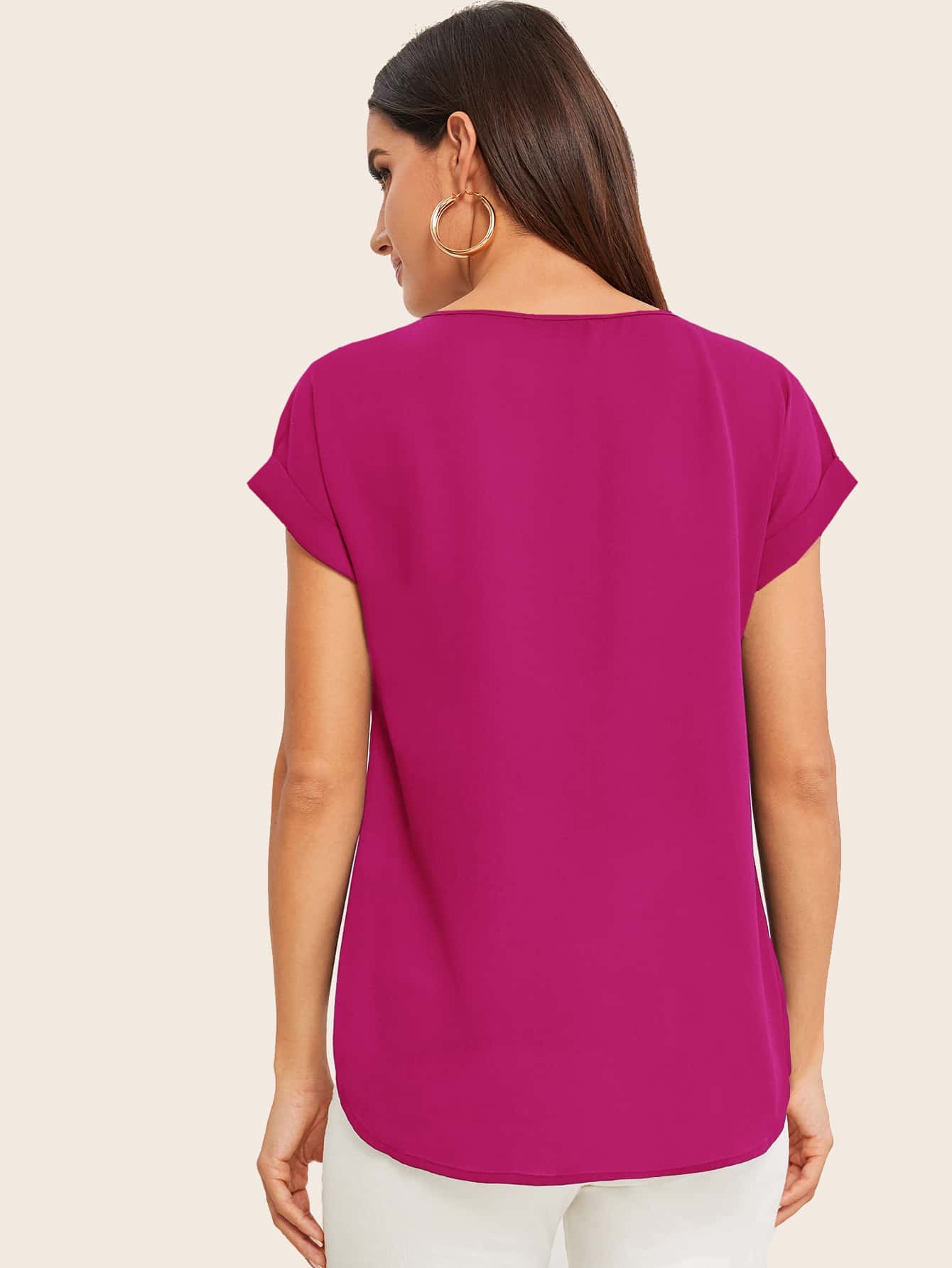 Top con orlo asimmetrico e polsino arrotolato