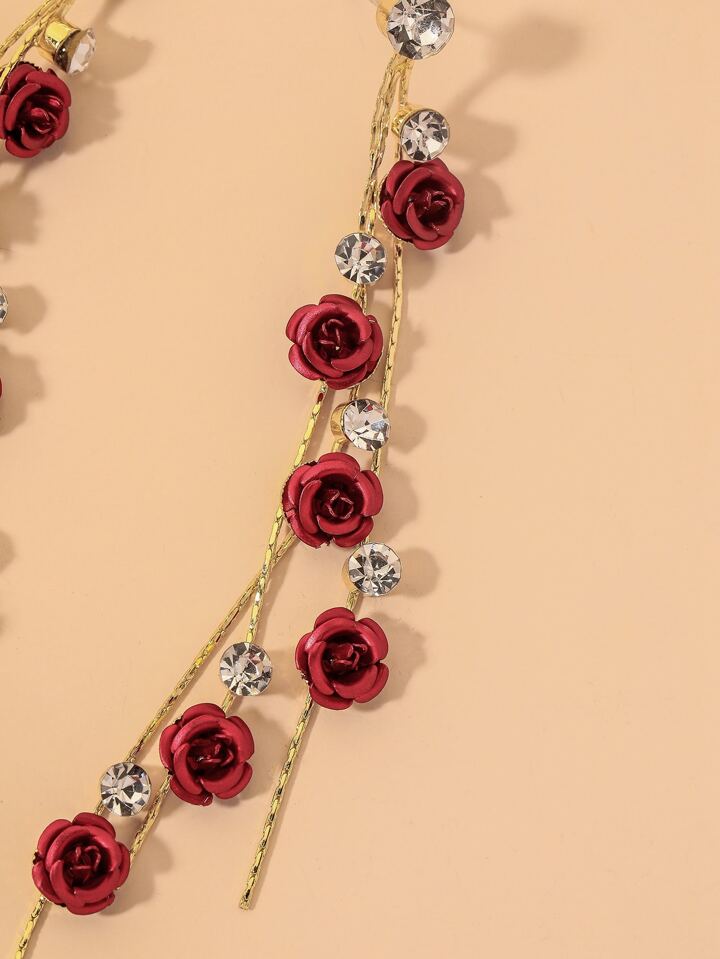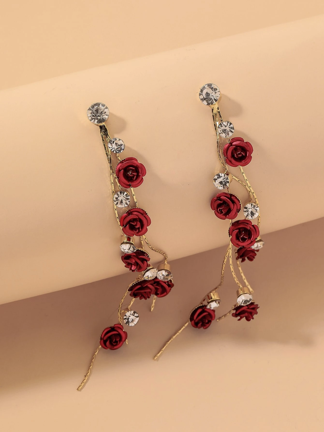 Orecchini pendenti a strisce lunghe con decoro rosa