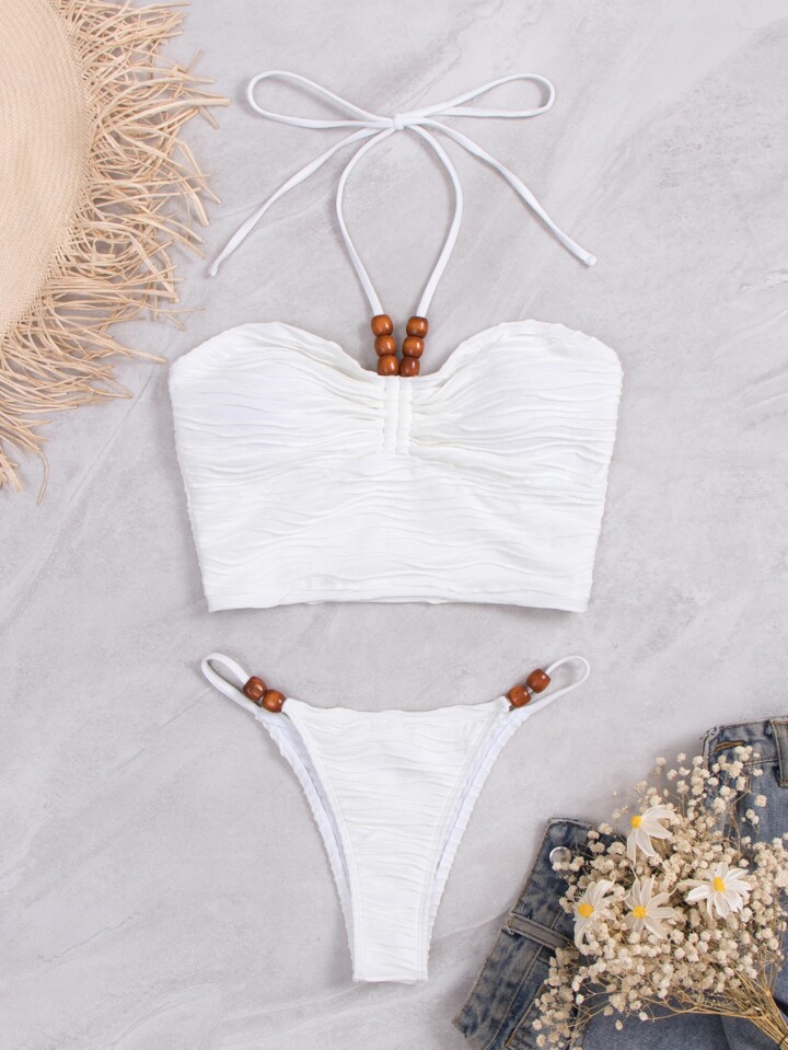 Bikini estivo da spiaggia con allacciatura posteriore a nodo ad halter
