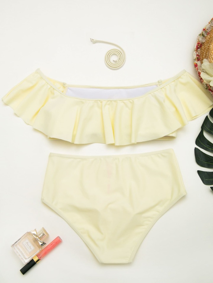 Costume Da Bagno A Fascia Con Volant Spalle Scoperte Per L'estate In Spiaggia