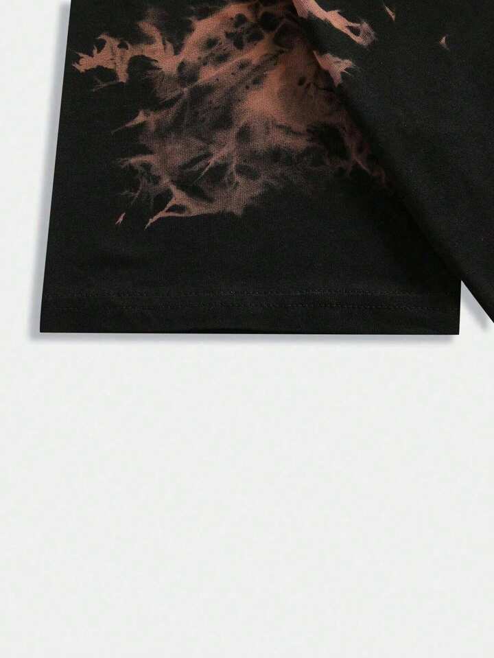 Sapstudio Maglietta grafica da uomo in cotone con trama tie-dye, teschio e lettera, per scuola