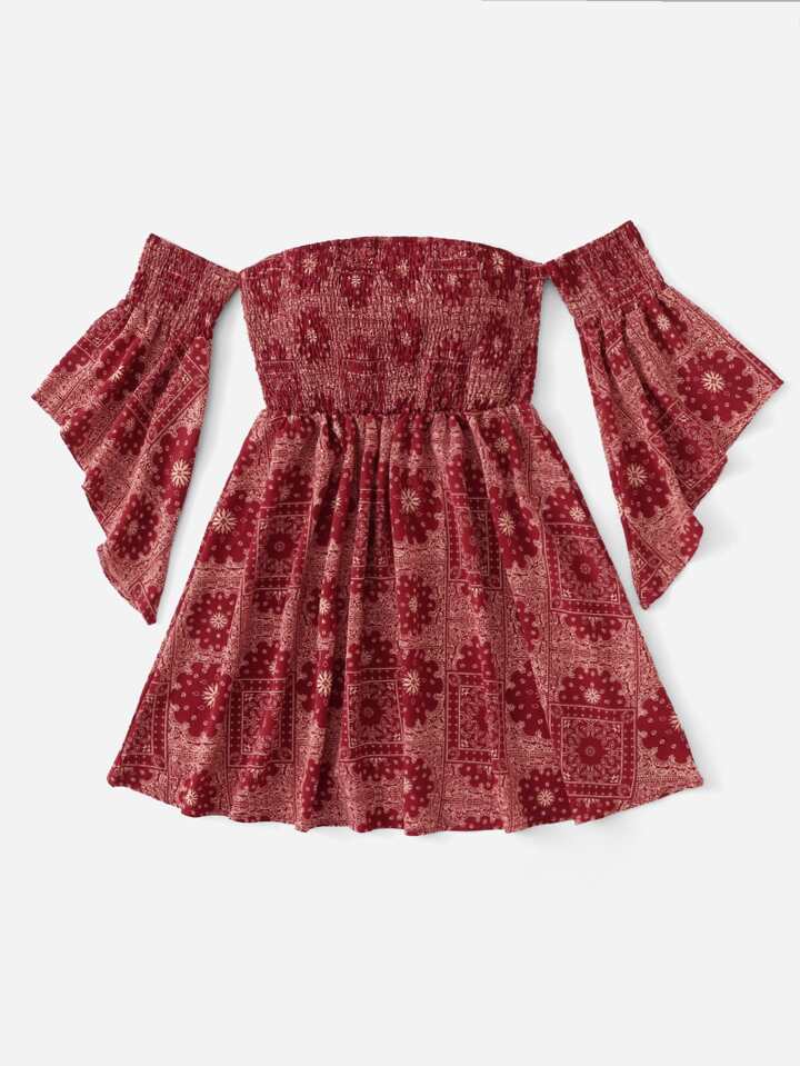 Abito arricciato con stampa fazzoletto con spalle scoperte