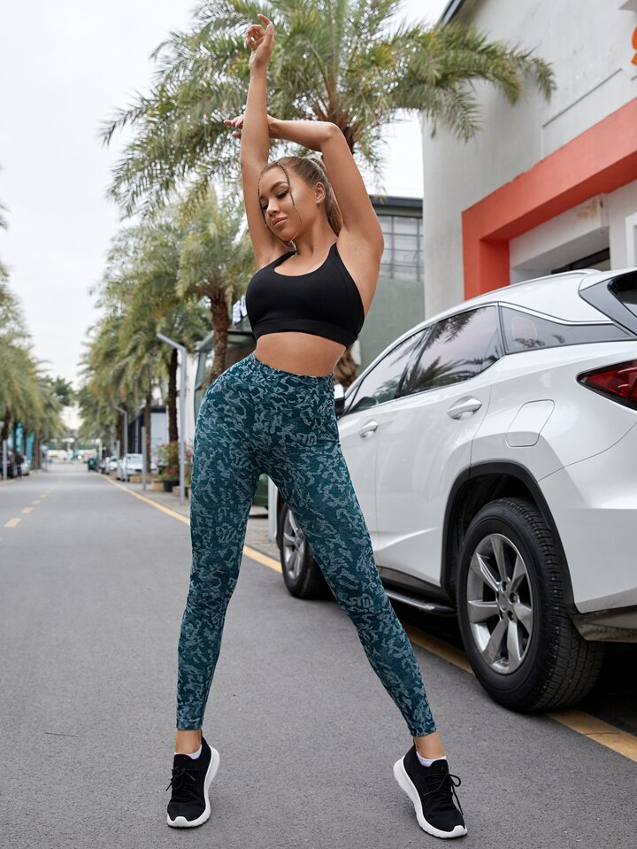 Leggings sportivi senza cuciture stampato ampia fascia in vita