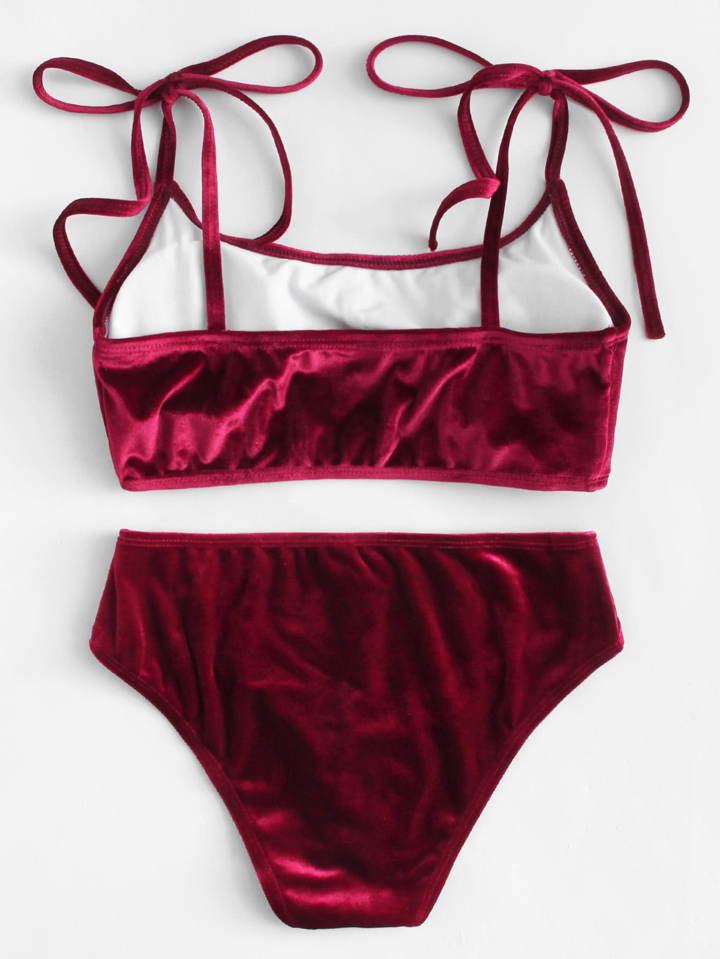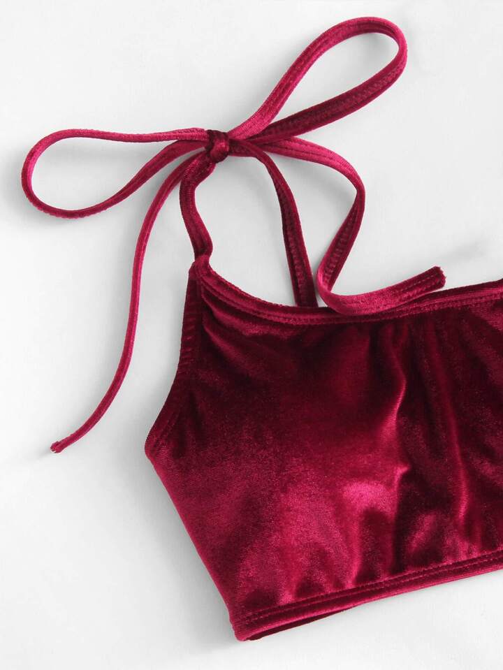 Set bikini con cucitura sul bordo e Top in velluto e nodo